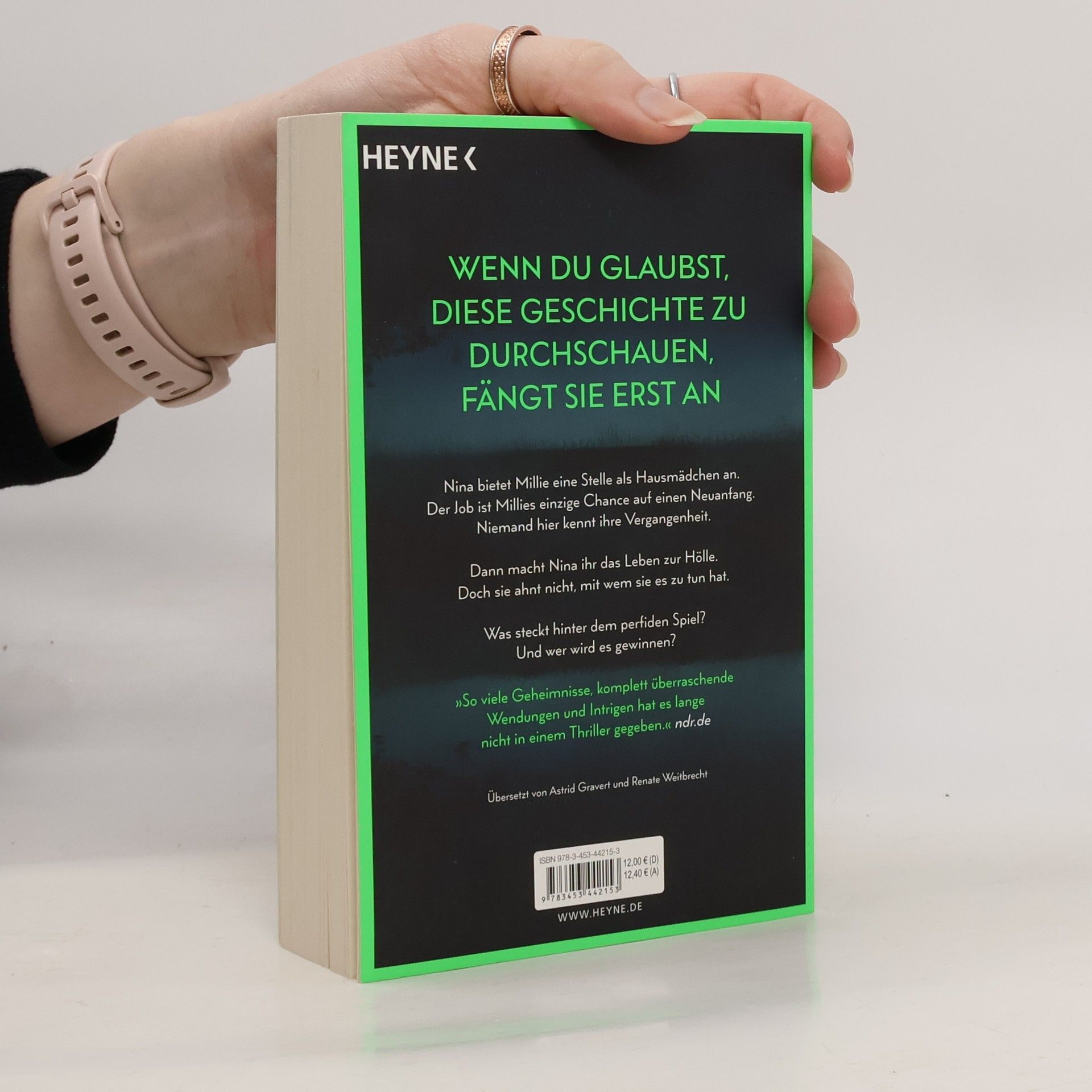 Wenn du glaubst, diese Geschichte zu durchschauen, fängt sie erst an Millie kann ihr Glück kaum fassen, als die elegante Nina ihr die Stelle als Haushaltshilfe inklusive Kost und Logis bei ihrer Familie auf Long Island anbietet. Schließlich hat sie eine Vergangenheit, von der niemand etwas wissen soll. Doch kaum ist Millie eingezogen, zeigt Nina ihr wahres Gesicht: Sie verwüstet das Haus und unterstellt ihr Dinge, die sie nicht getan hat. Ihre verwöhnte Tochter behandelt Millie ohne jeden Respekt. Nur Ninas attraktiver Mann Andrew ist nett zu ihr. Wäre da nur nicht Ninas wachsende Eifersucht. Hat sie Millie nur eingestellt, um ihr das Leben zur Hölle zu machen? Oder hat auch sie ein dunkles Geheimnis, von dem niemand etwas erfahren darf?