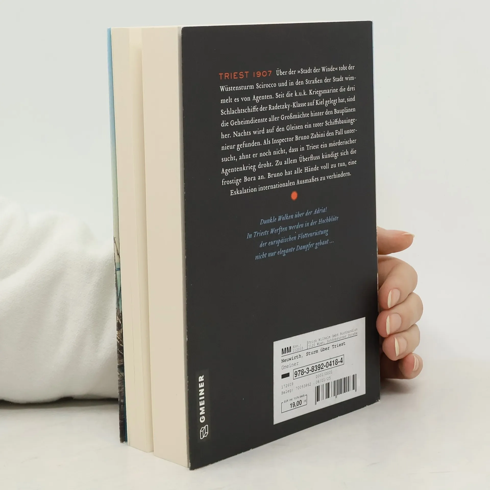 Über der »Stadt der Winde« tobt der Wüstensturm Scirocco und in den Straßen der Stadt wimmelt es von Agenten. Seit die k. u. k. Kriegsmarine die drei Schlachtschiffe der Radetzky-Klasse auf Kiel gelegt hat, sind die Geheimdienste aller Großmächte hinter den Bauplänen her. Nachts wird auf den Gleisen ein toter Schiffsbauingenieur gefunden. Als Inspector Bruno Zabini den Fall untersucht, ahnt er noch nicht, dass in Triest ein mörderischer Agentenkrieg droht. Zu allem Überfluss kündigt sich die frostige Bora an. Bruno hat alle Hände voll zu tun, eine Eskalation internationalen Ausmaßes zu verhindern.