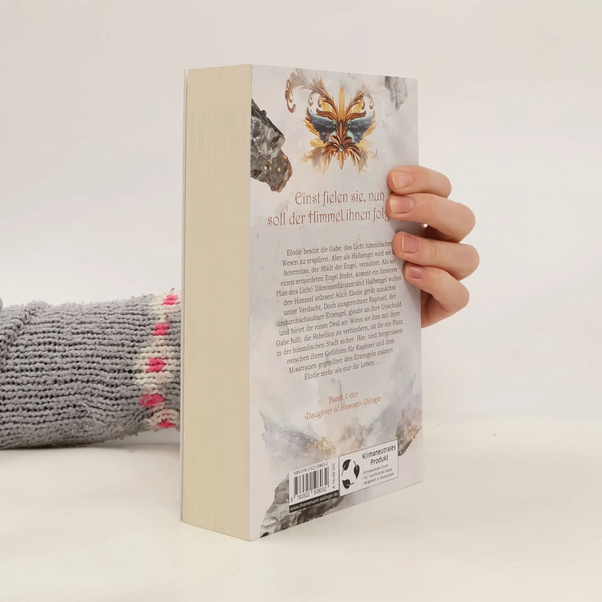Einst fielen sie, nun soll der Himmel ihnen folgen … Elodie besitzt die Gabe, das Licht himmlischer Wesen zu erspüren. Aber als Halbengel wird sie in Aeternitas, der Stadt der Engel, verachtet. Als sie einen ermordeten Engel findet, kommt ein finsterer Plan ans Licht: Dämonenfürsten und Halbengel wollen den Himmel stürzen! Auch Elodie gerät zunächst unter Verdacht. Doch ausgerechnet Raphael, der undurchschaubare Erzengel, glaubt an ihre Unschuld und bietet ihr einen Deal an: Wenn sie ihm mit ihrer Gabe hilft, die Rebellion zu verhindern, ist ihr ein Platz in der himmlischen Stadt sicher. Hin- und hergerissen zwischen ihren Gefühlen für Raphael und dem Misstrauen gegenüber den Erzengeln riskiert Elodie mehr als nur ihr Leben … Epische Romantasy über den Kampf zwischen Gut und Böse , Himmel und Hölle, Engel und Dämonen – voller Drama, Knistern und unglaublicher Plot Twists . //Dies ist der erste Band der »Daughter of Heaven « -Dilogie. Alle Romane der dämonisch-himmlischen Liebesgeschichte im Loomlight-Verlag: -- Band 1: Where Angels Fall -- Band 2: When Demons Rise (August 2023)//