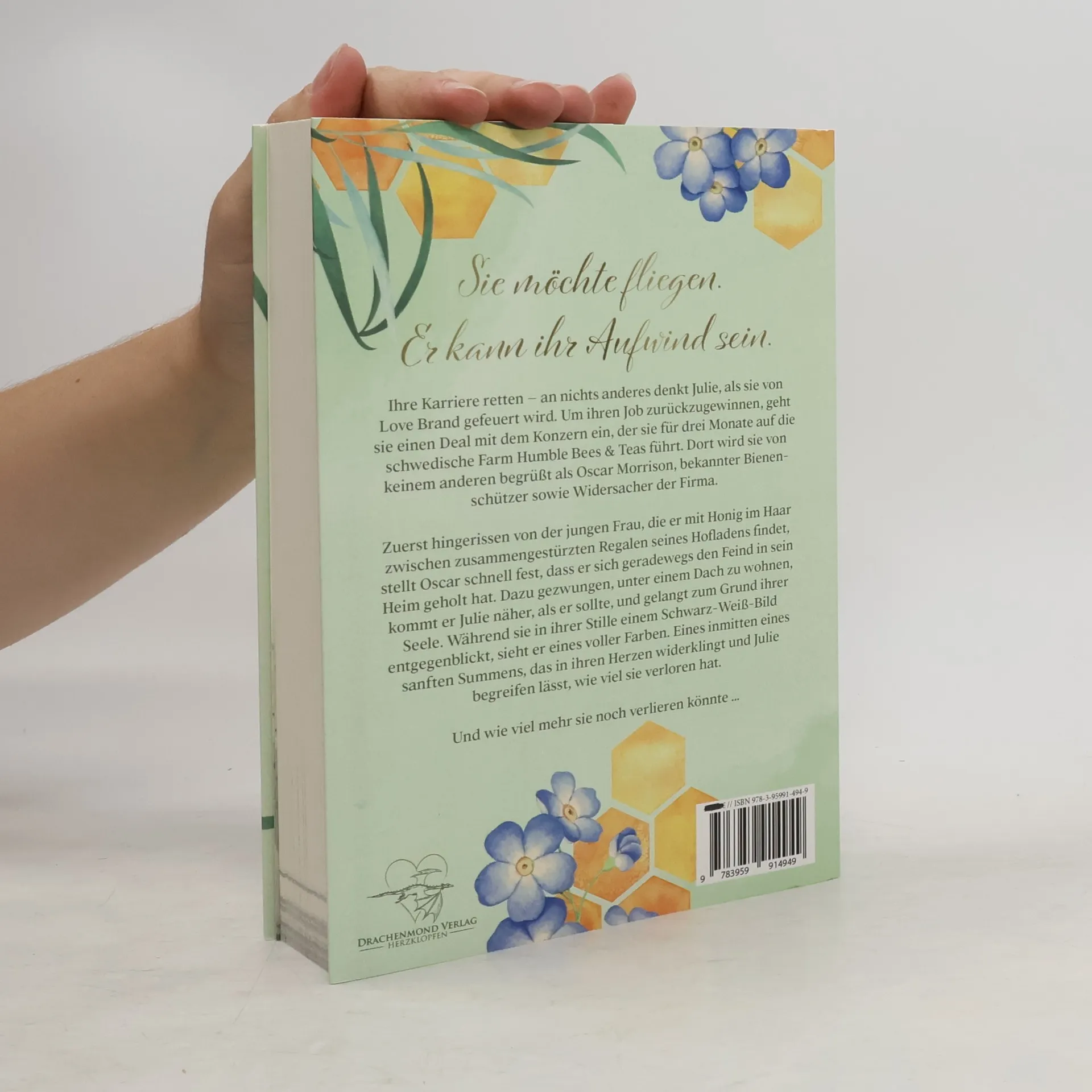 Sie möchte fliegen. Er kann ihr Aufwind sein. Ihre Karriere retten - an nichts anderes denkt Julie, als sie von Love Brand gefeuert wird. Um ihren Job zurückzugewinnen, geht sie einen Deal mit dem Konzern ein, der sie für drei Monate auf die schwedische Farm Humble Bees & Teas führt. Dort wird sie von keinem anderen begrüßt als Oscar Morrison, bekannter Bienenschützer sowie Widersacher der Firma. Zuerst hingerissen von der jungen Frau, die er mit Honig im Haar zwischen zusammengestürzten Regalen seines Hofladens findet, stellt Oscar schnell fest, dass er sich geradewegs den Feind in sein Heim geholt hat. Dazu gezwungen, unter einem Dach zu wohnen, kommt er Julie näher, als er sollte, und gelangt zum Grund ihrer Seele. Während sie in ihrer Stille einem Schwarz-Weiß-Bild entgegenblickt, sieht er eines voller Farben. Eines inmitten eines sanften Summens, das in ihren Herzen widerklingt und Julie begreifen lässt, wie viel sie verloren hat. Und wie viel mehr sie noch verlieren könnte …