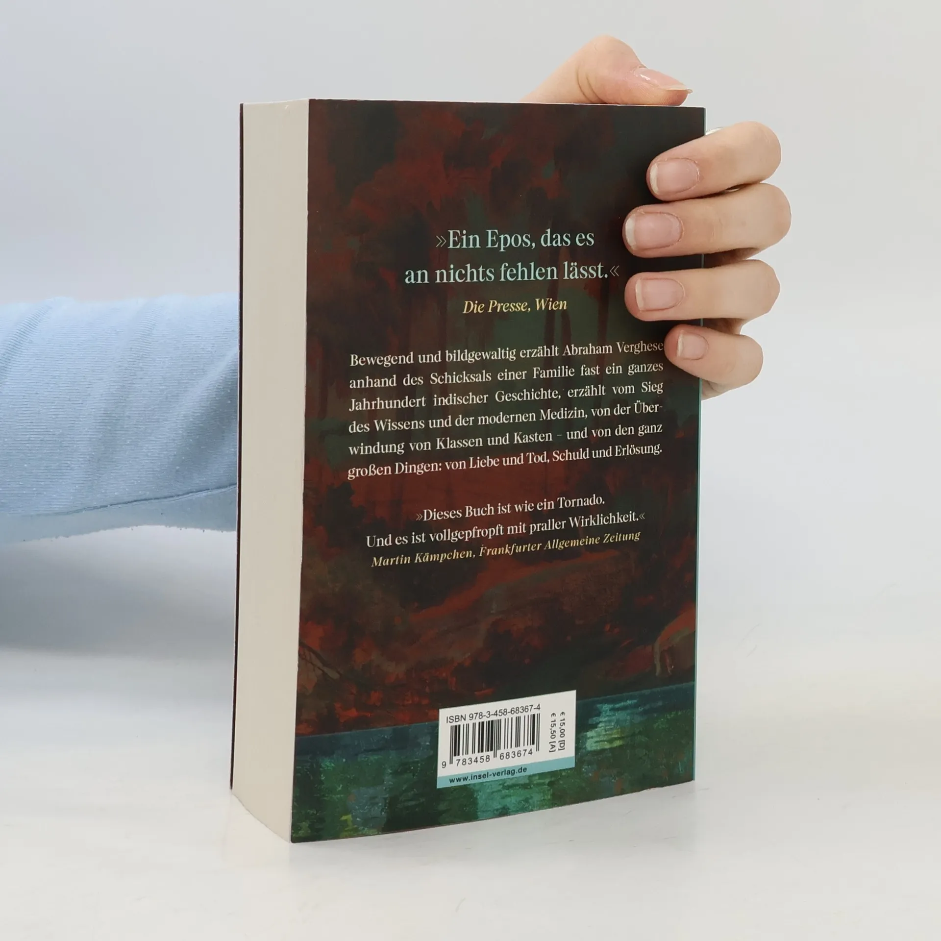 In diesem epischen Roman von Abraham Verghese wird die bewegende Geschichte einer Familie starker Frauen in Kerala um 1900 erzählt. Mariamma entdeckt ein Geheimnis über die Angst ihrer Familie vor Wasser, während sie den Herausforderungen des Lebens begegnet. Der Roman thematisiert Liebe, Tod, Schuld und Erlösung über fast ein ganzes Jahrhundert indischer Geschichte.