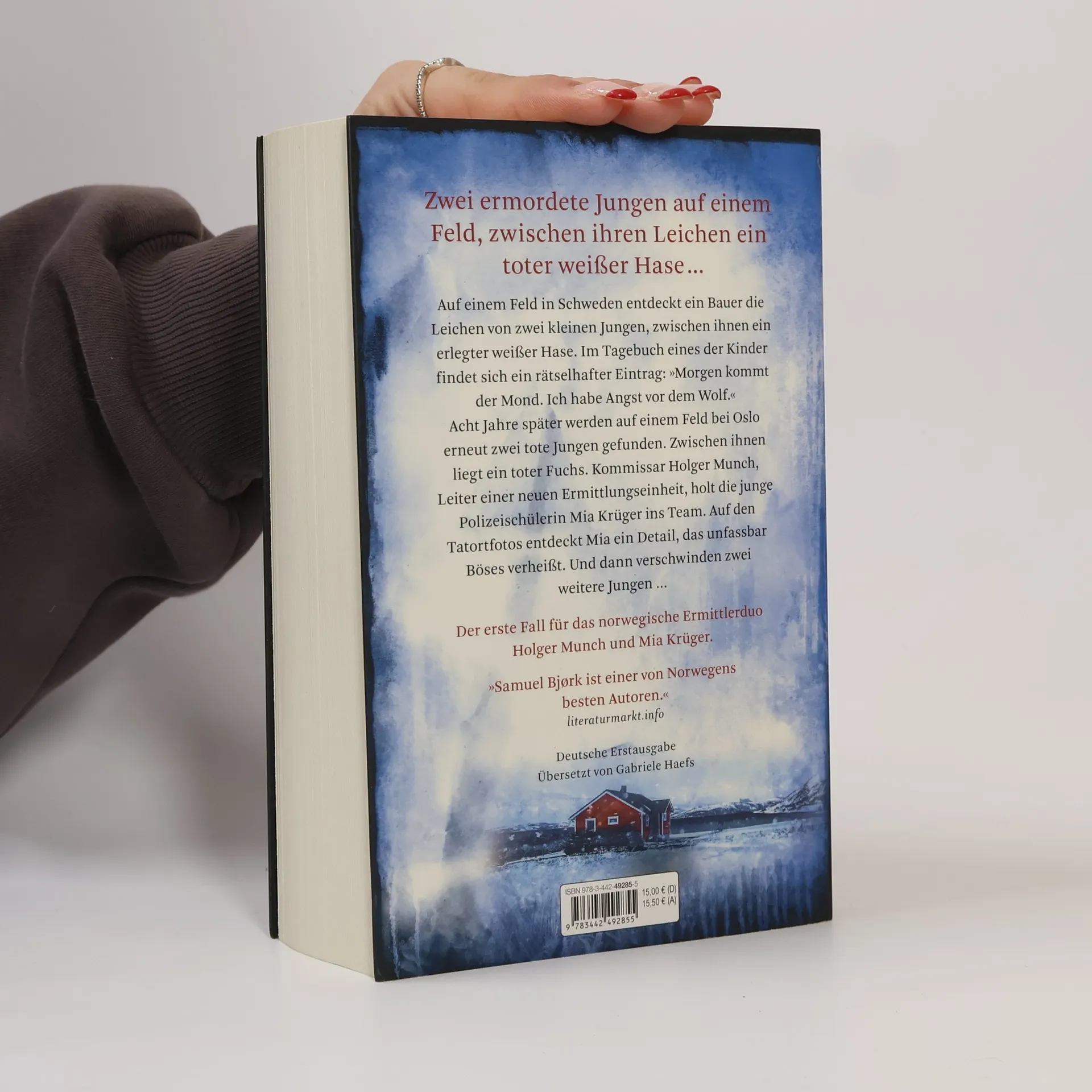 Der neue atemraubende Thriller von SPIEGEL-Bestsellerautor Samuel Bjørk! Zwei ermordete Jungen auf einem Feld, zwischen ihren Leichen ein toter weißer Hase. Und eine erschreckende Botschaft ... Auf einem Feld in Schweden entdeckt ein Bauer die Leichen von zwei elfjährigen Jungen, zwischen ihnen ein erlegter weißer Hase. Im Tagebuch eines der Kinder findet sich ein rätselhafter Eintrag: »Morgen kommt der Mond. Ich habe Angst vor dem Wolf.« Acht Jahre später werden auf einem Feld bei Oslo erneut zwei tote Jungen gefunden. Kommissar Holger Munch, frisch befördert zum Leiter einer neuen Ermittlungseinheit, holt die junge Polizeischülerin Mia Krüger ins Team, die an der Akademie durch ihren Spürsinn hervorsticht. Auf den Tatortfotos entdeckt sie ein Detail, das unfassbar Böses verheißt. Und dann verschwinden zwei weitere Jungen …