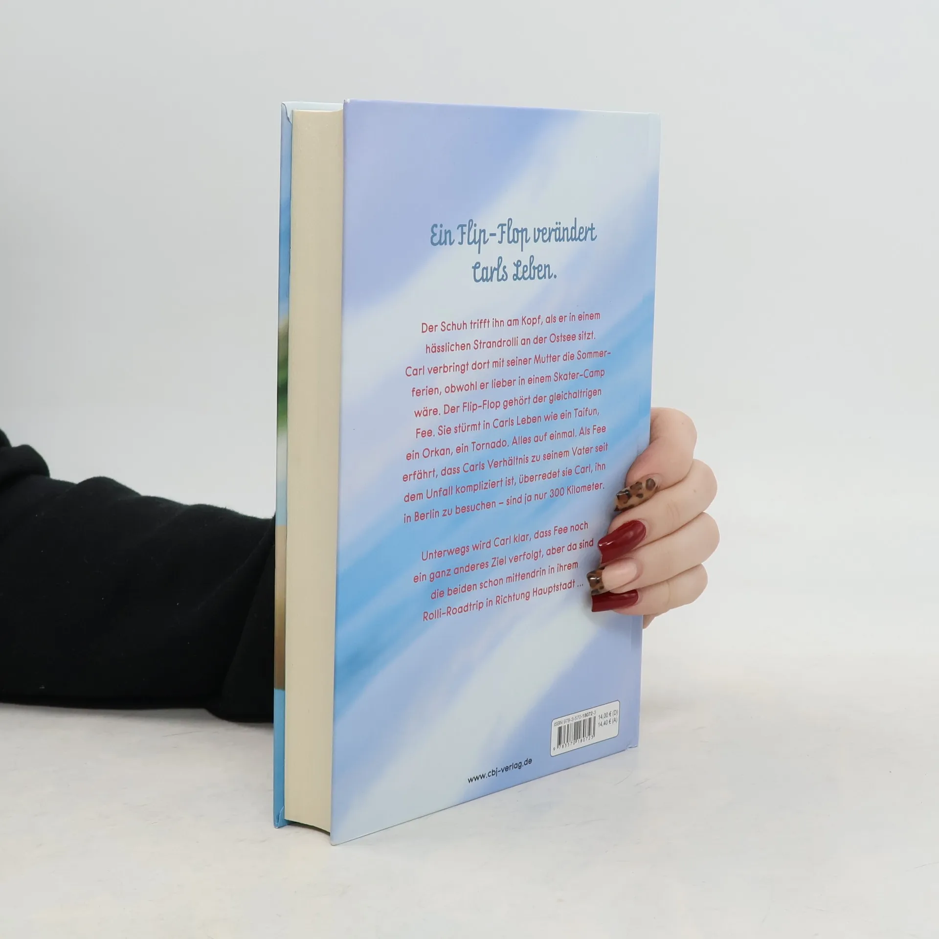 Nur 300 Kilometer – ein Roadmovie der besonderen Art Ein Flip-Flop verändert Carls Leben. Der Schuh triff ihn am Kopf, als er in einem hässlichen Strandrolli an der Ostsee steht. Carl verbringt dort mit seiner Mutter die Sommerferien, obwohl er lieber in einem Rollstuhlskater-Camp wäre. Der Flip-Flop gehört der gleichaltrigen Fee. Sie stürmt in Carls Leben wie ein Taifun, ein Orkan, ein Tornado. Alles auf einmal. Als Fee erfährt, dass Carls Verhältnis zu seinem Vater seit seinem Unfall gestört ist, überredet sie Carl, ihn in Berlin zu besuchen … sind ja nur 300 Kilometer. Unterwegs wird Carl klar, dass Fee noch ein ganz anderes Ziel verfolgt und in eigener Mission eigentlich nur die Ex-Kanzlerin treffen will. Die kennt sein Vater, weil er früher ihr Chauffeur war. Aber da sind die beiden schon mittendrin in ihrem Rolli-Roadtrip in Richtung Hauptstadt ... Ein Roadmovie der besonderen Art mit dem starken Thema Inklusion – feinfühlig, unterhaltsam und mit viel Leichtigkeit erzählt