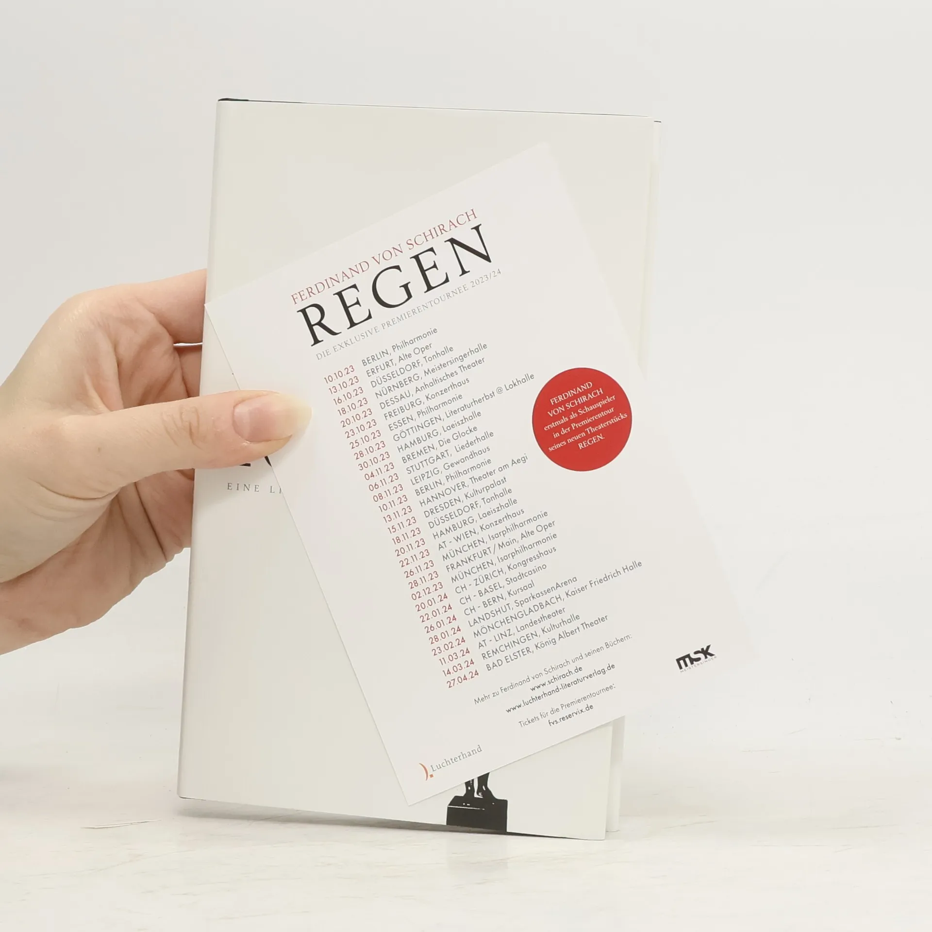 Eine ebenso mutige wie sehr persönliche Erzählung, ein literarisches Spiel an der Grenze zwischen Bühnenfigur und Autor. Ferdinand von Schirachs neues Buch »Regen« ist eine Erzählung in Form eines Theatermonologs, den Ferdinand von Schirach ab Herbst 2023 im Rahmen einer großen Premierentournee auf zahlreichen deutschen Bühnen selbst sprechen und aufführen wird: Ein Mann kommt durchnässt aus dem Regen in eine Bar – auf die Bühne – und denkt über Verbrechen und Strafen nach, über das Großartige und das Schreckliche unserer Zeit, über die Würde des Menschen, die Einsamkeit, die Liebe, den Verlust und das Scheitern.