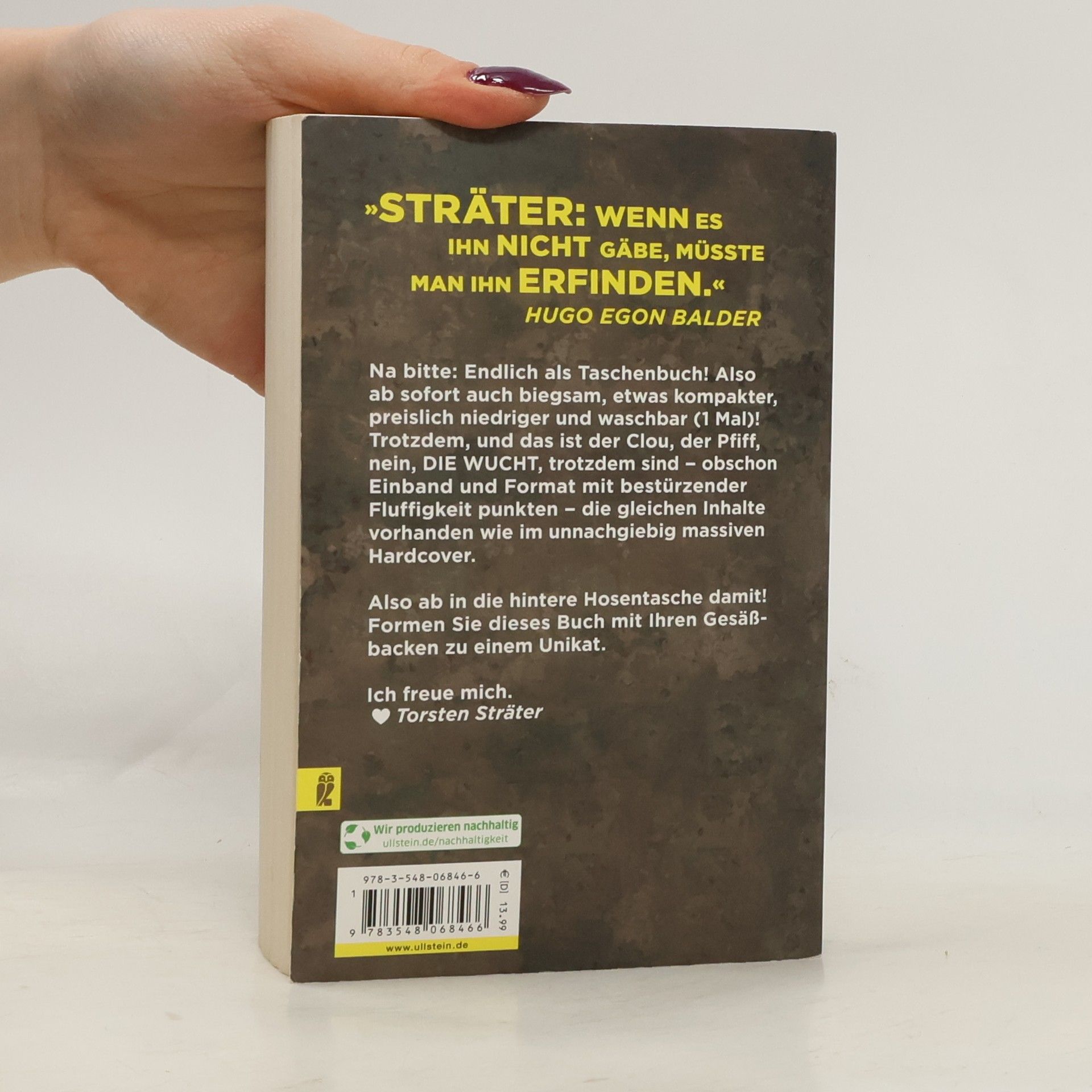 »Sträter: Wenn es ihn nicht gäbe, müsste man ihn erfinden!« Hugo Egon Balder Ein neues Buch vom Meister des Abschweifens. Es handelt sich hierbei um die besten Geschichten der letzten drei Jahre. Storys mit Pfiff. Eine Führung durch die ganze Welt der Idiotie, verbunden mit der Einsicht, dass nichts menschlicher ist als das Missgeschick. Ferner: seltsame Berichte vom Rand der schiefen Ebene. Schilderungen, die man sich auf gar keinen Fall verkneifen kann. Und zwischendurch paar Infos darüber, was sonst noch so war. Kurz: ein seriöses Konzept. Und Sträter gelobt, es sehr lustig zu gestalten.