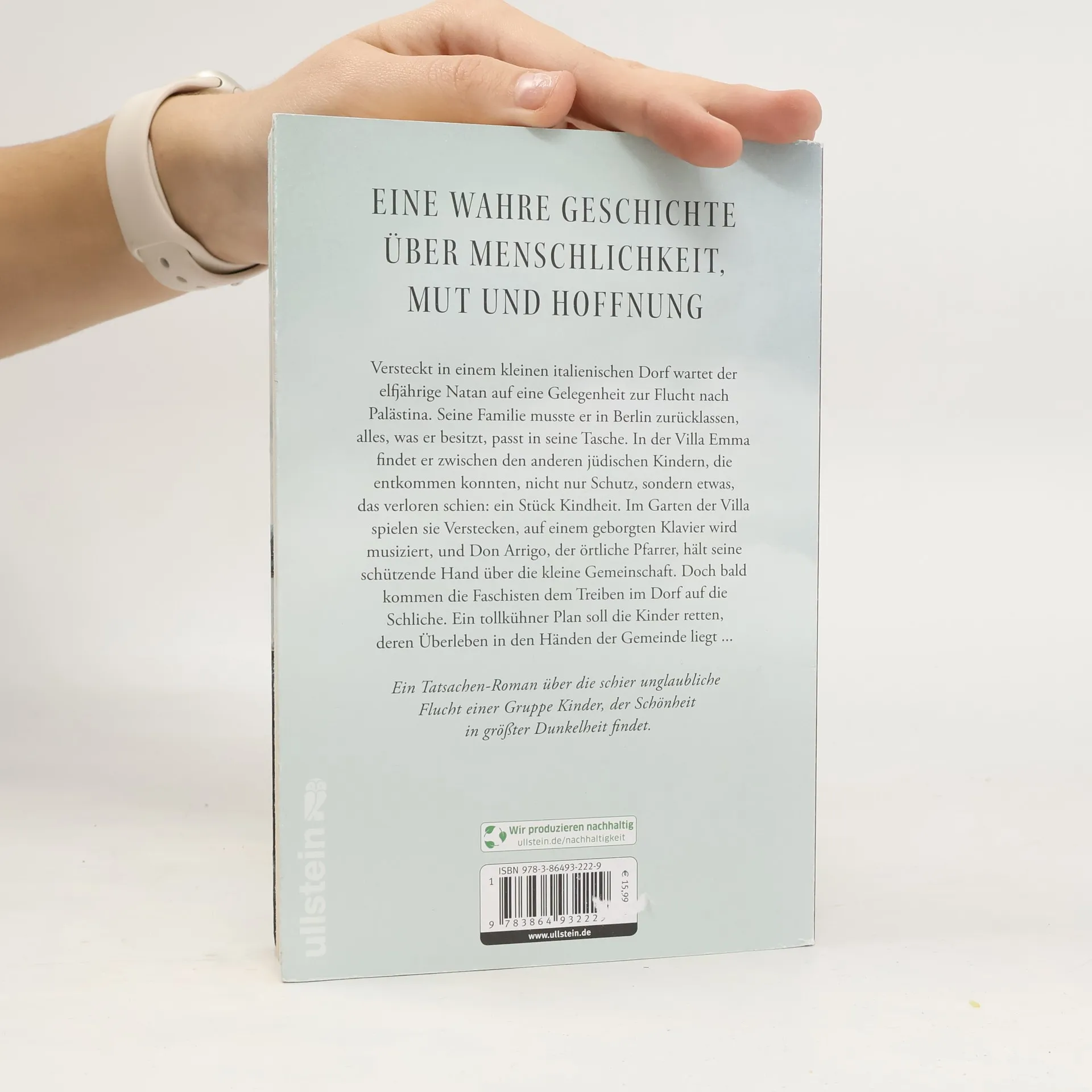 Eine wahre Geschichte über große Menschlichkeit in dunklen Zeiten: Im kleinen italienischen Dorf wartet der elfjährige Nathan auf die Chance, das von den Nationalsozialisten verwüstete Europa in Richtung Palästina zu verlassen. In der Villa Emma findet er unter anderen jüdischen Kindern, die in den Süden fliehen konnten, nicht nur Schutz, sondern auch ein Stück Kindheit. Gemeinsam musizieren sie auf einem geborgten Klavier, während Don Arrigo, der lokale Pfarrer, die kleine Gemeinschaft beschützt. Doch die Gefahr rückt näher, und Don Arrigo erhält den Hinweis, dass die Faschisten dem Geschehen im Dorf auf die Spur gekommen sind. Ein mutiger Plan wird geschmiedet, um die Kinder zu retten, deren Überleben von der Gemeinde abhängt. Dieser akribisch recherchierte und berührende Roman ist emotional und packend. Die Shoah ist ein oft behandeltes Thema in der Literatur, doch der Protagonist gelingt es, die Leser zu überraschen und mitzureißen. Der Roman wurde verfasst, um das Vergessen zu verhindern und um diejenigen zu ehren, die im Zweiten Weltkrieg Menschen gerettet haben. Mitreißend und bewegend, ist er eine Hommage an die kleinen Protagonisten, ihre Begleiter und das Dorf, in dem die Kinder versteckt wurden.