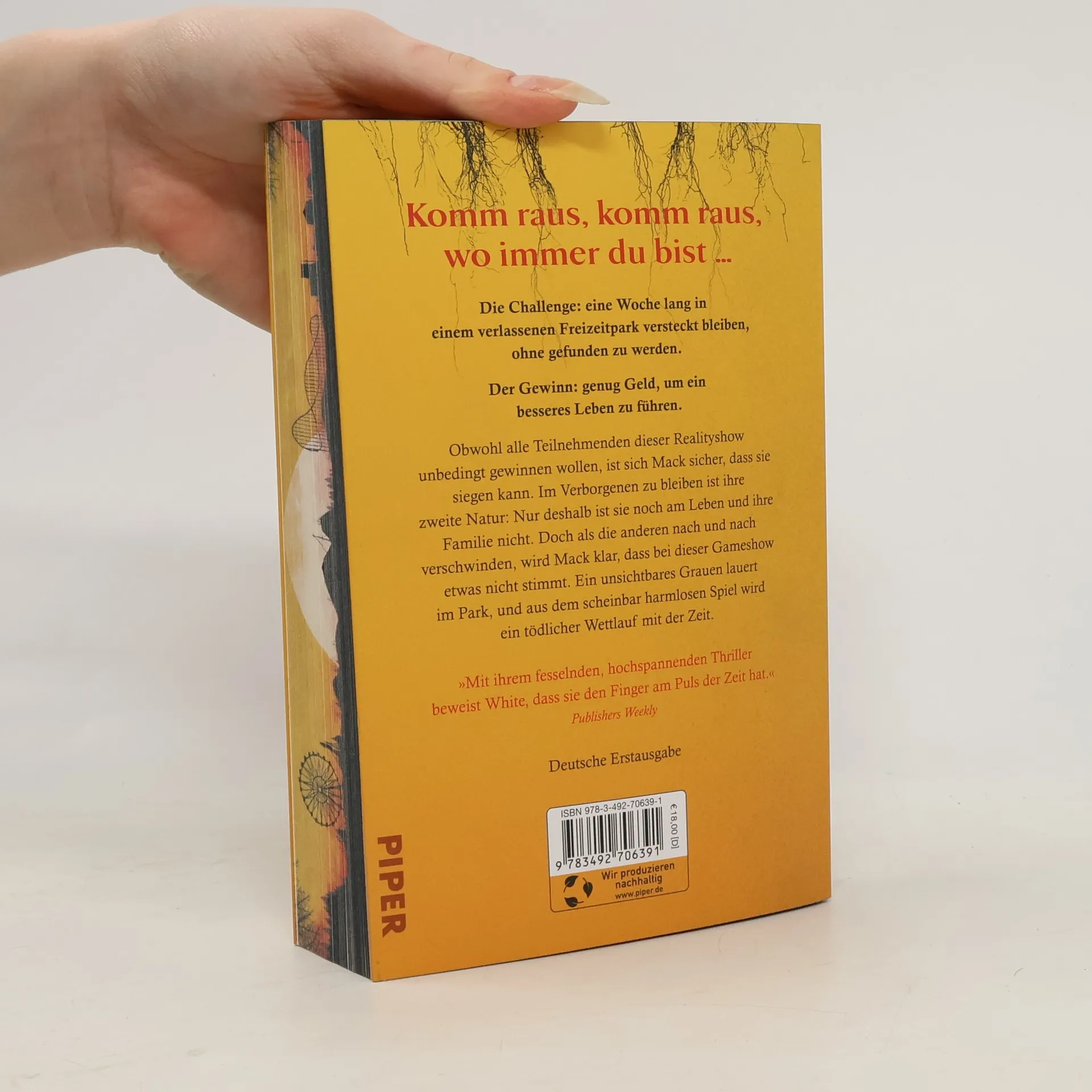 Bei dieser Gameshow überlebt nur, wer das beste Versteck findet ... für alle Fans von »Squid Game«! Die Challenge: eine Woche lang in einem verlassenen Freizeitpark versteckt bleiben, ohne gefunden zu werden.Der Gewinn: genug Geld, um sein Leben zum Besseren zu verändern.Obwohl alle Teilnehmenden unbedingt gewinnen wollen, ist sich Mack sicher, dass sie siegen kann. Im Verstecktbleiben ist sie ein Profi: Das ist der Grund, warum sie noch lebt und ihre Familie nicht.Doch als die anderen nach und nach verschwinden, wird Mack klar, dass mit dieser Gameshow etwas nicht stimmt. Vielleicht ist der einzige Weg, ihrer aller Leben zu retten, aus den Verstecken zu kommen und gemeinsam zu kämpfen.