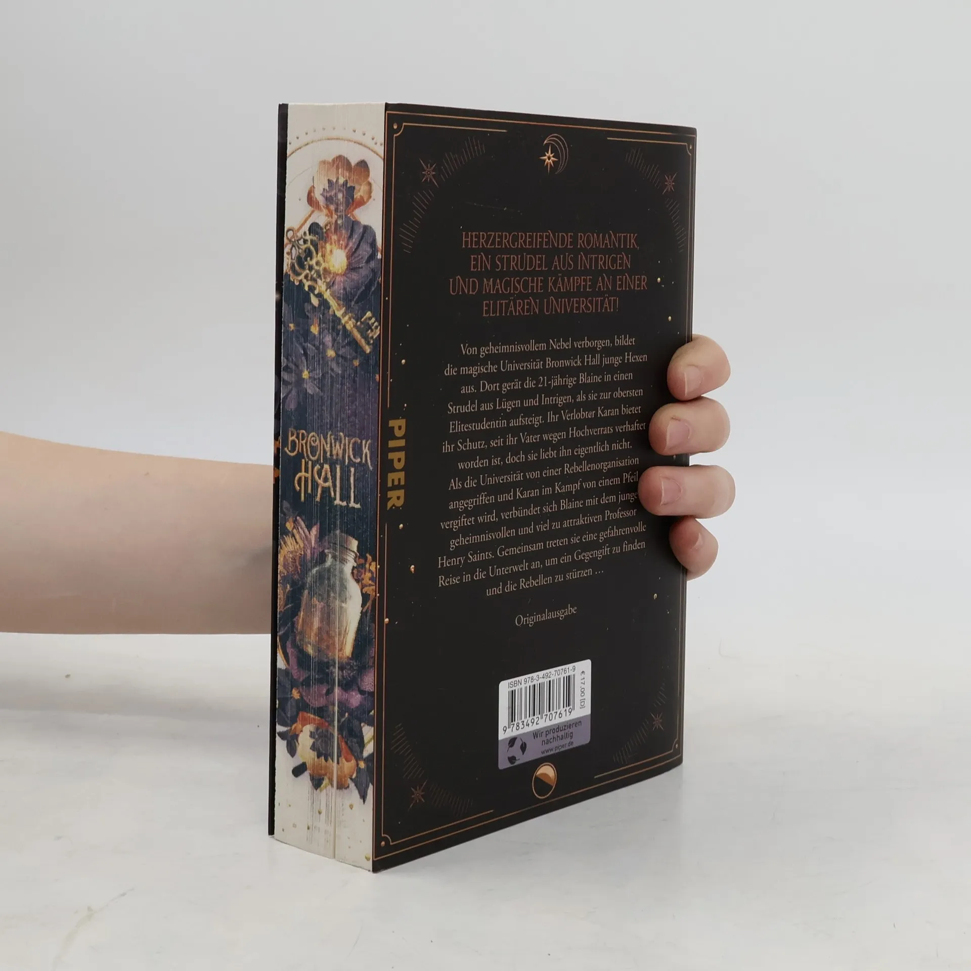 Eine magische Hexenakademie im Kampf gegen unheilvolle Rebellen! Von geheimnisvollem Nebel verborgen, bildet die magische Universität Bronwick Hall junge Hexen aus. Dort gerät die 21-jährige Blaine in einen Strudel aus Lügen und Intrigen, nachdem sie zur obersten Elitestudentin aufsteigt. Ihr Verlobter Karan bietet ihr Schutz, seit ihr Vater wegen Hochverrats verhaftet wurde, doch sie liebt ihn eigentlich nicht. Als die Universität von einer Rebellenorganisation angegriffen und Karan im Kampf von einem Pfeil vergiftet wird, verbündet sich Blaine mit dem jungen, geheimnisvollen und viel zu attraktiven Professor Henry Saints, um ihre Zukunft zu retten. Bronwick Hall:Band 1: DornengiftBand 2: Dornenkrone