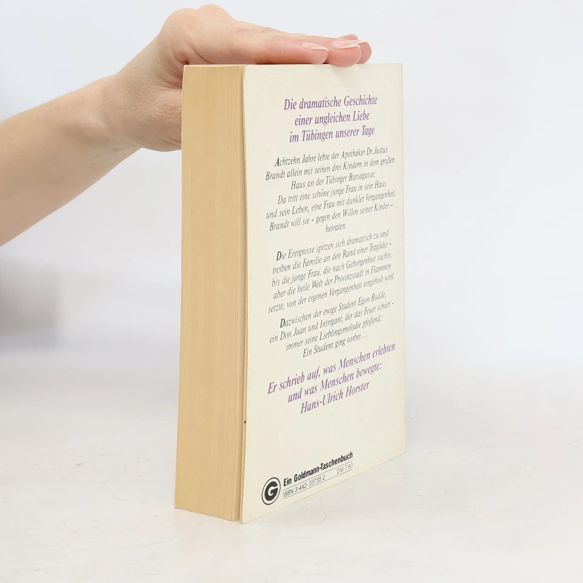 Nach achtzehn Jahren Witwerdasein tritt eine bildschöne Frau in das Leben des Tübinger Apothekers Dr. Justus Brandt. Seine Heiratspläne entfachen einen Sturm der Entrüstung unter seinen erwachsenen Kindern. In der schwäbischen Universitätsstadt beginnt ein Kampf der Leidenschaften, der das einstmals solide Familiengefüge der Brandts zu zerstören droht …Ein lebensnaher Schicksalsroman des Erfolgsautors Hans-Ulrich Horster, erfüllt mit Dramatik, Humor und menschlicher Anteilnahme. (Dieser Text bezieht sich auf eine frühere Ausgabe.)