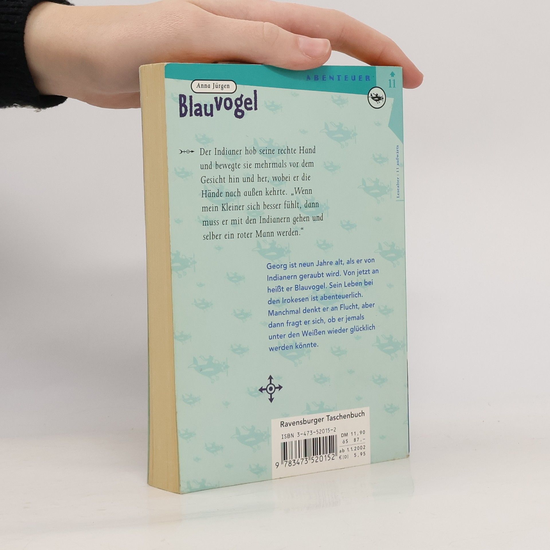 George, Sohn weißer Siedler, wird von Indianern entführt und lebt fortan beim Stamm der Irokesen. Nordamerika, 1755: Engländer und Franzosen kämpfen verbissen um Indianerland. Dabei wird der neunjährige George vom Stamm der Irokesen gefangen genommen und von einer Indianerfamilie anstelle ihres verstorbenen Sohnes angenommen. Einsamkeit und Fremdheit umgeben ihn; er denkt nur an Flucht. Deshalb braucht George lange, ehe er seinen neuen Namen, Blauvogel, wirklich annehmen kann. Und doch lernt er Liebe und Achtung, Geborgenheit, Stolz und Treue erst unter den Irokesen kennen.