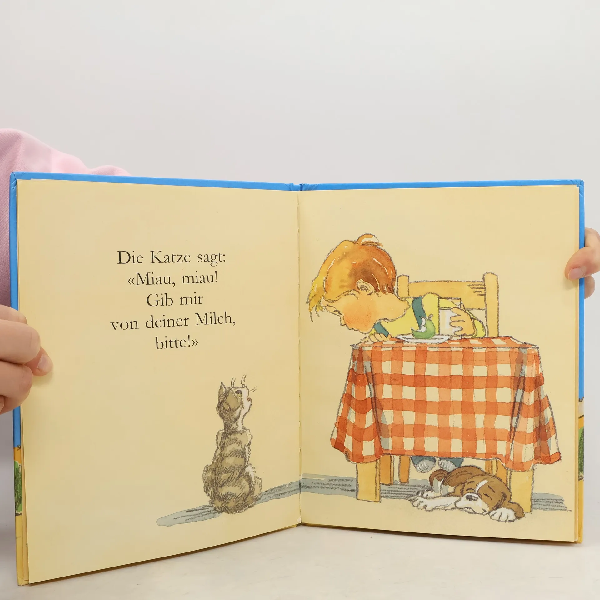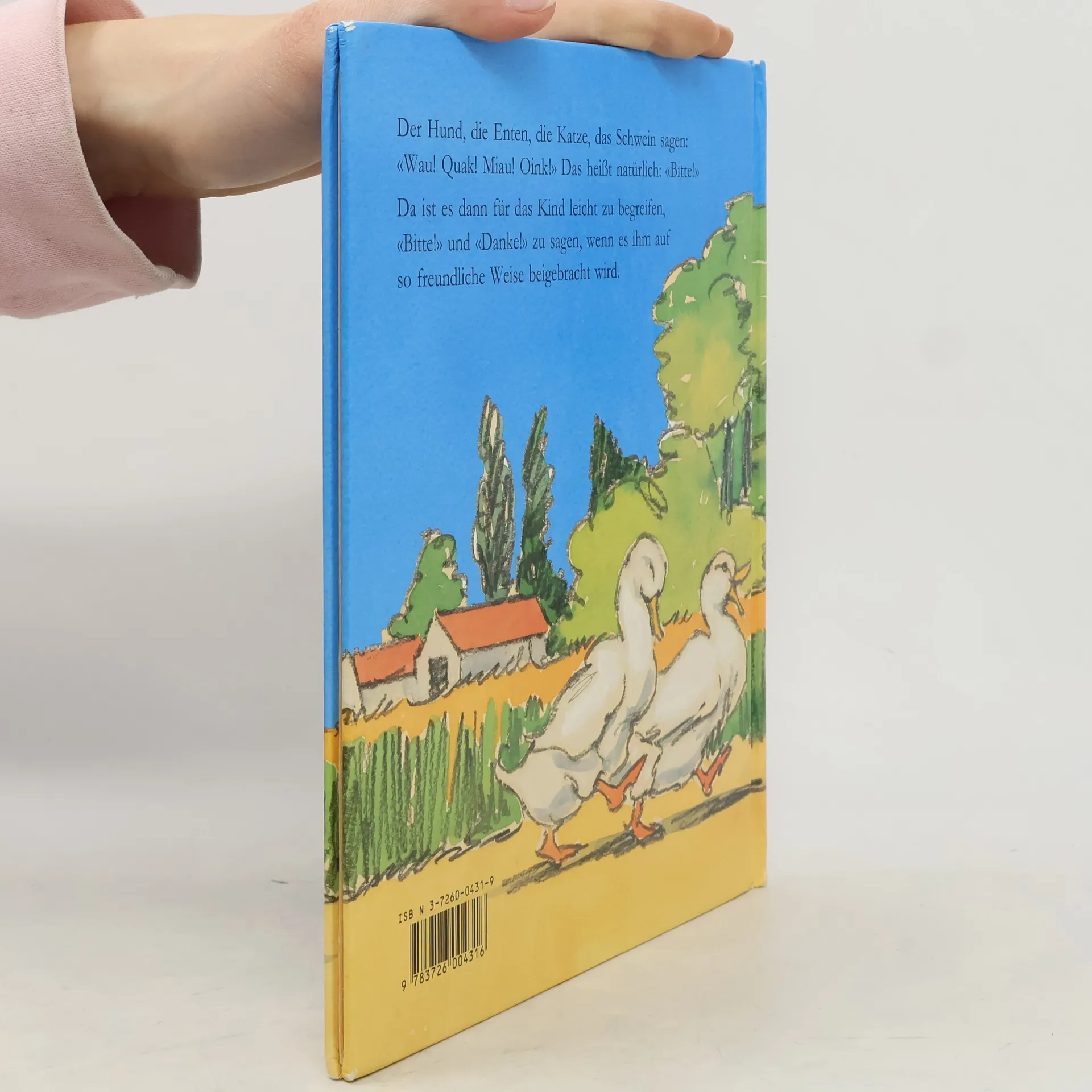 Bilderbuch für die Kleinsten. Es geht um das kleine Wörtchen "bitte". Auf zart gelblich getönten Seiten sehen wir ein kleines Kind mit verschiedenen Tieren spielen und sie versorgen. Und ihr "bitte" ist für das Kind in ihren Lauten verborgen. So ist es kein Wunder, dass es, selbst auf das Fehlen des Wörtchens aufmerksam gemacht, erst einmal grunzt, bellt, miaut und schnattert, ehe es menschlich "bitte" sagt. Und die Oma bedankt sich für diese höfliche Bitte genauso. Ein pädagogisches Bilderbuch also, allerdings eins, das Kindern ab 2 Jahren Spass machen kann. Die Illustrationen beschränken sich auf das lebhaft agierende Kind und das jeweilige Tier, der Text ist ganz einfach und lädt zum "Mitlesen" und Mitspielen ein. - Überall möglich
