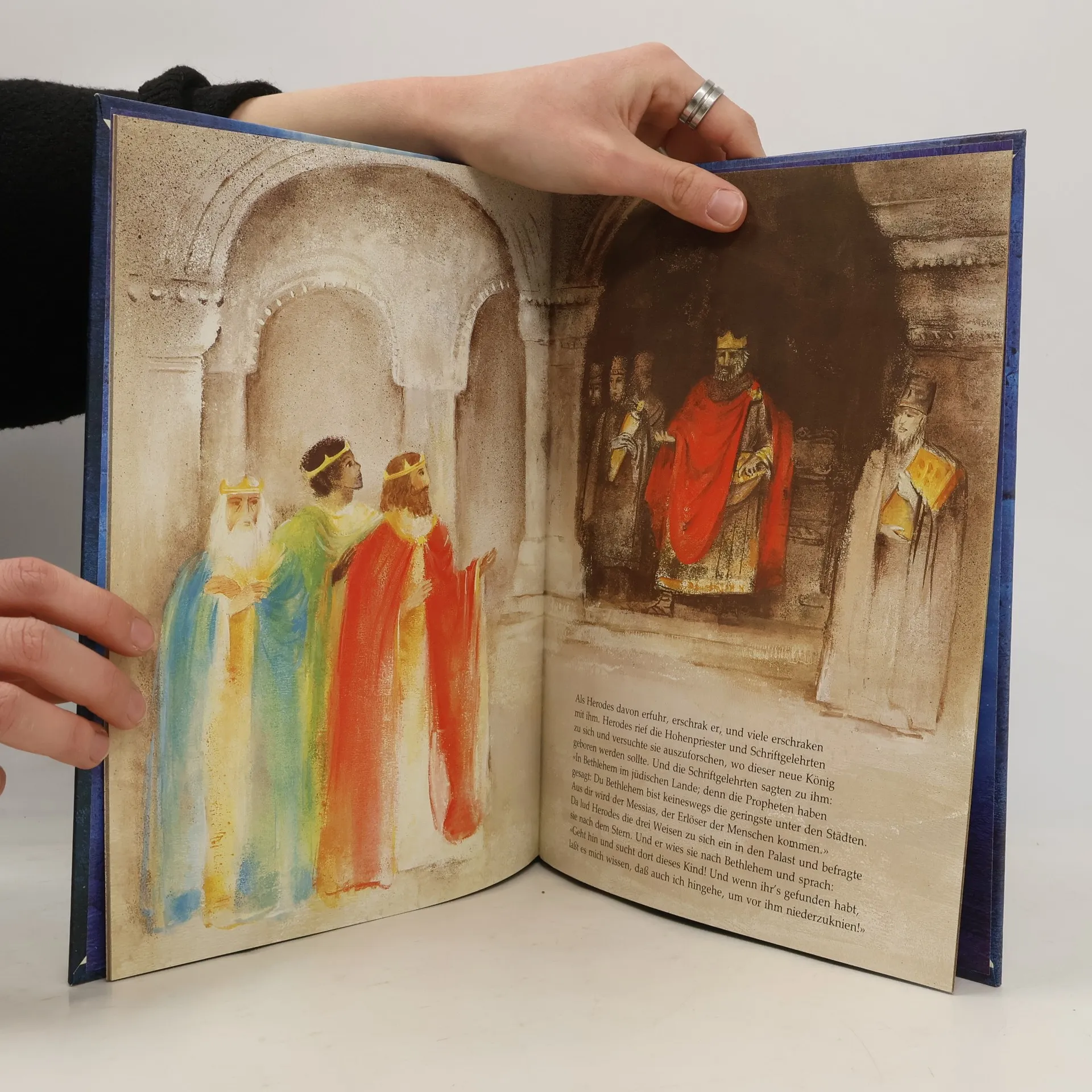 Die Geschichte von der Geburt Jesu, von den Hirten und den 3 Königen, die das Kind im Stall besuchten und von der Flucht nach Ägypten. (ab 5)