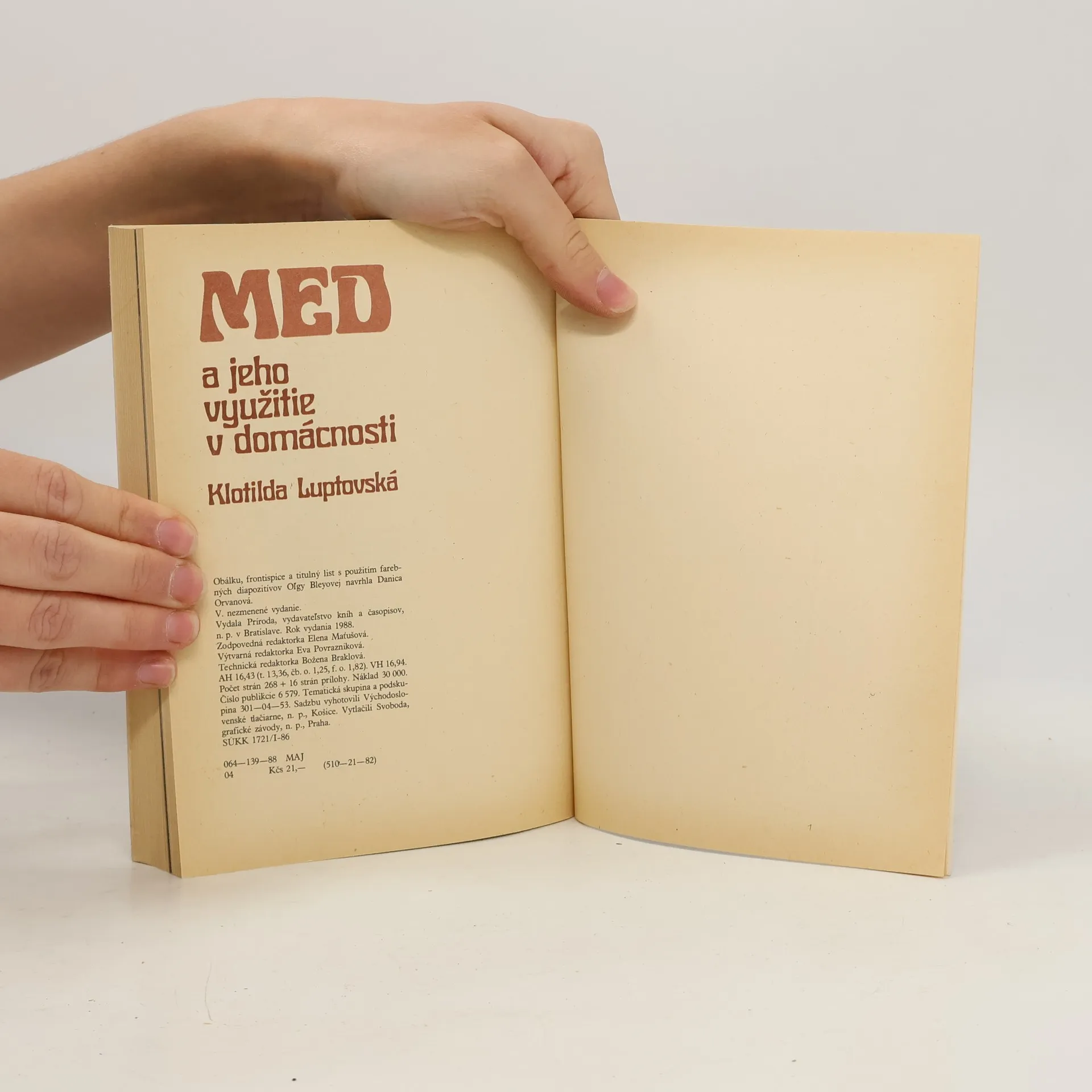 Všetko od histórie medu, pernikárstva, ornamentiky a hodnoty medu ako liečivej potraviny. 5. nezmenené vydanie. Rukopis lektorovali: RNDr. Jozef Čižmárik, Želmíra Kresáková, Ľudovít Švancer. 268 strán + 16 strán prílohy. Farebné fotografie vyhotovila Oľga Bleyová. Obálku, frontispicea titulný list s použitím farebných diapozitívov Oľgy Bleyovej navrhla Danica Orvanová.
