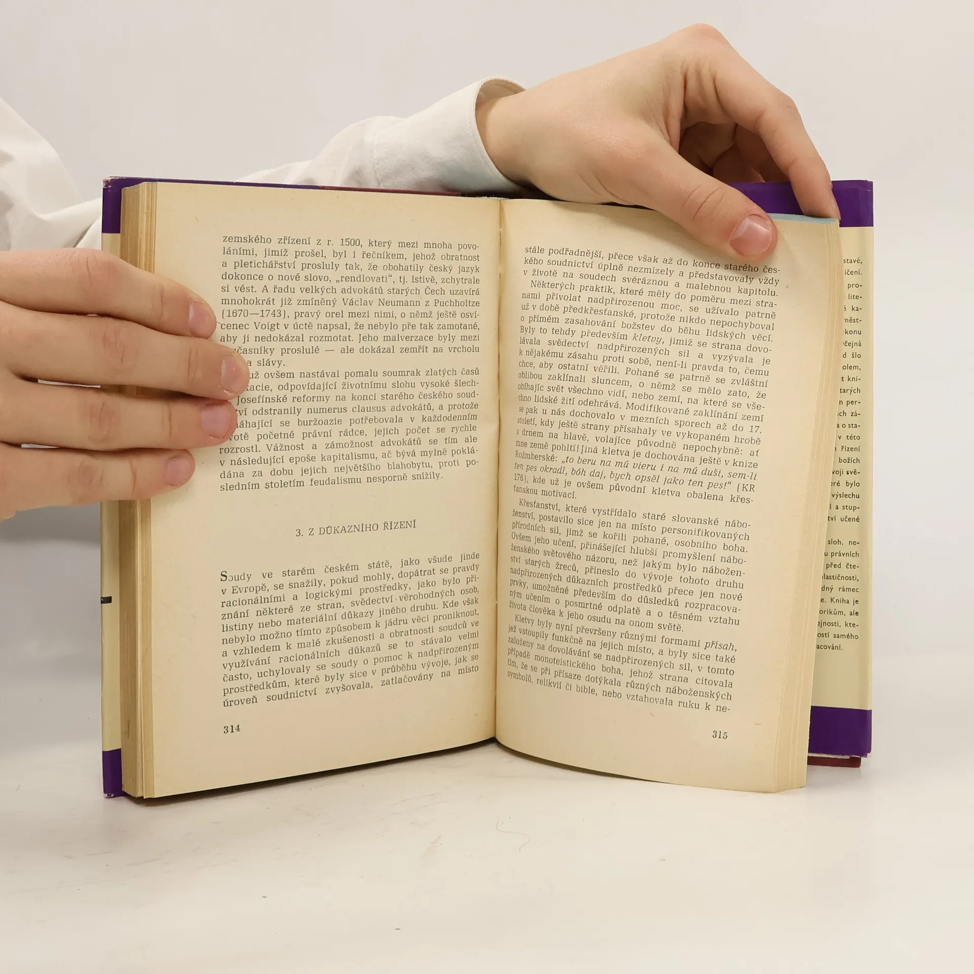 Populárně vědecká kniha, v níž se na pozadí historického dění líčí slavné soudní příběhy a popisuje se soustava starých českých soudů, jejich činnost a život na nich. Kniha je rozdělena do tří tematických celků: I. Soudnictvív českých dějinách (zde např. Husův proces, potrestání účastníků českého povstání za třicetileté války); II. Organizace jurisdikce a procesní řízení ve starém českém státě (zde např. písemný proces, trestní řízení a výkontrestu); III. Na soudech za starých časů (zde např. důkazní řízení na feudálních soudech - mučení). Kniha je psána bohatým vypravěčským slohem, neseným ve starém tónu právních a historických pramenů.
