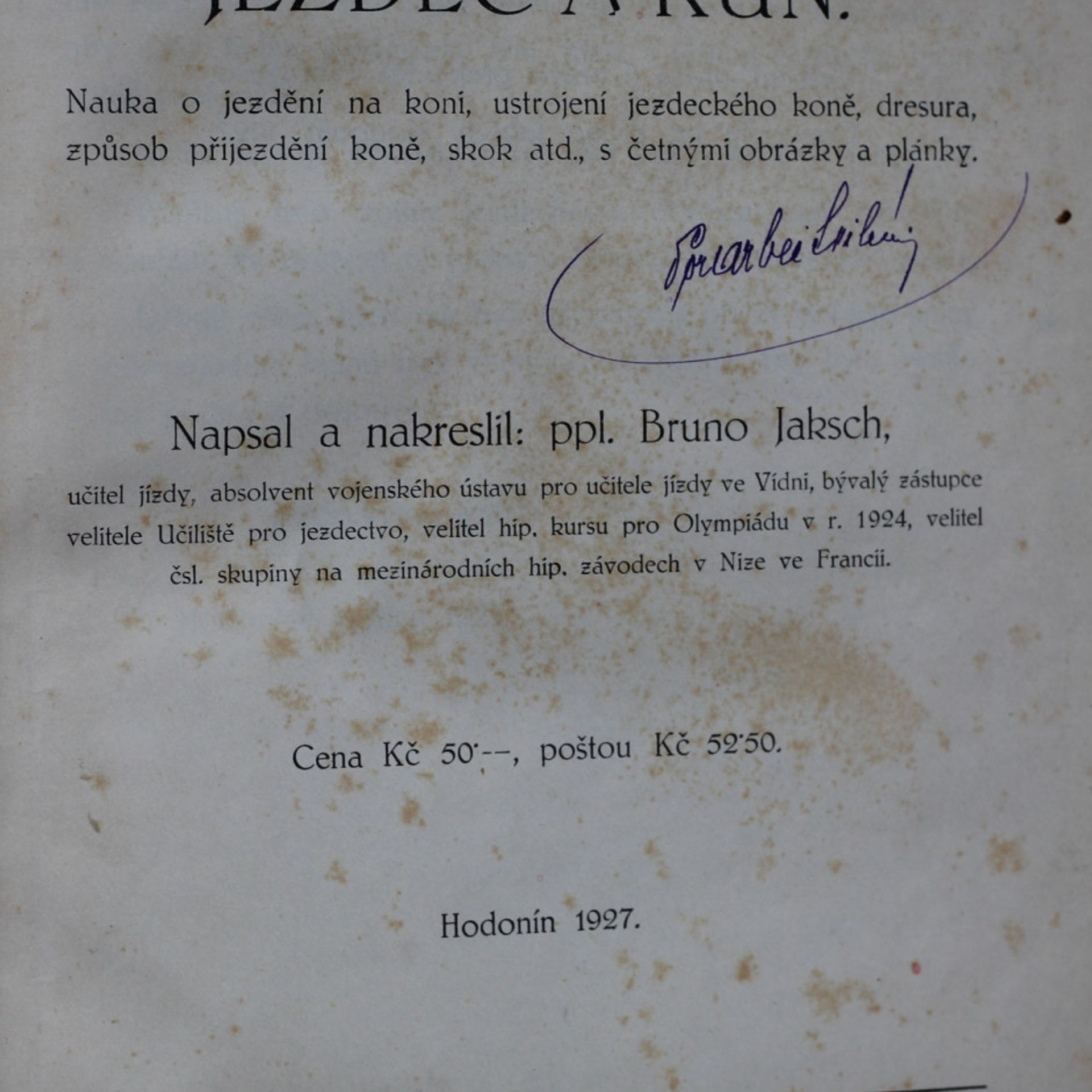 Jezdec a kůň : nauka o jezdění na koni, ustrojení jezdeckého koně, dresura, způsob přijezdění koně, skok atd., s četnými obrázky a plánky, Bruno Jaksch