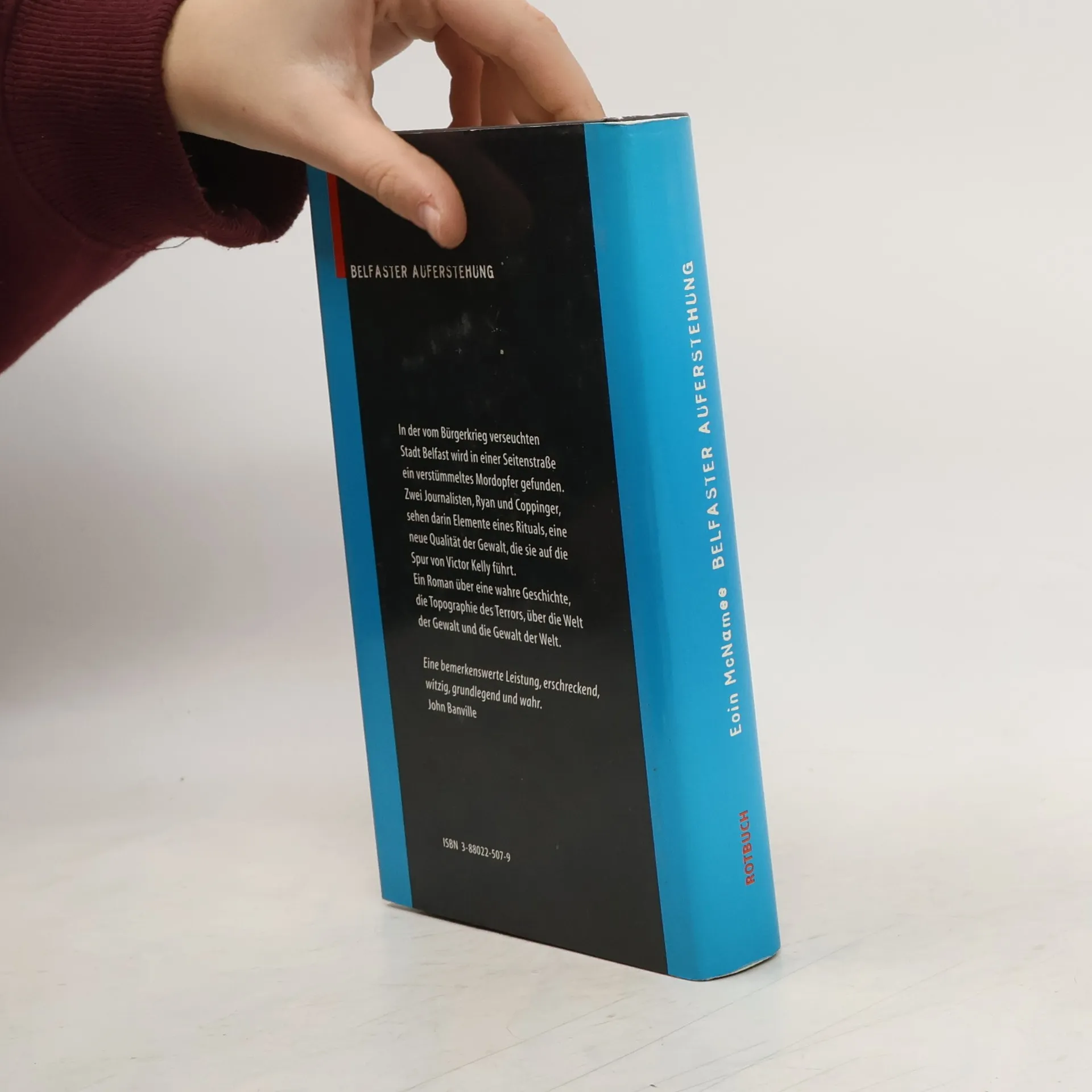 Ein Roman über eine wahre Geschichte, über die Topographie des Terrors, über die Welt der Gewalt und die Gewalt der Welt. In der vom Bürgerkrieg verseuchten Stadt Belfast wird in einer Seitenstraße ein verstümmeltes Mordopfer gefunden. Zwei Journalisten, Ryan und Coppinger, sehen darin Elemente eines Rituals, eine neue Qualität der Gewalt, die sie auf die Spur von Victor Kelly führt. „Der große Victor“, aufgewachsen mit Gangsterfilmen und dem Ruch, aus einer „Katholenfamilie“ zu stammen, ist der skrupellose Aufsteiger innerhalb einer paramilitärischen protestantischen Organisation. Als seine grauenvoll inszenierten Morde sich immer weiter von den Motiven der politischen Drahtzieher entfernen und so das Gleichgewicht der konfessionell motivierten Auseinandersetzungen stören, lassen ihn seine Hintermänner fallen. Victor wird zum Gejagten. McNamees atmosphärisch dichter, in England und USA gepriesener Belfast-Roman ist ein einzigartiges literarisches Dokument, dessen Gültigkeit nicht an den konkreten Ort gebunden ist. Belfaster Auferstehung ist spannend, poetisch und voller eindrucksvoller Bilder, die sichtbar machen, daß Gewalt mit gesellschaftlichen, politischen oder psychologischen Erklärungsmustern allein in ihrem Wesen nicht zu fassen ist. „Ein außergewöhnliches Buch, das nicht nur die politische Landkarte von Belfast beleuchtet, sondern auch die dunklen Ringstraßen des kollektiven Gedächtnisses und die geheimen Blaupausen in unseren Köpfen.“ Daily Telegraph.
