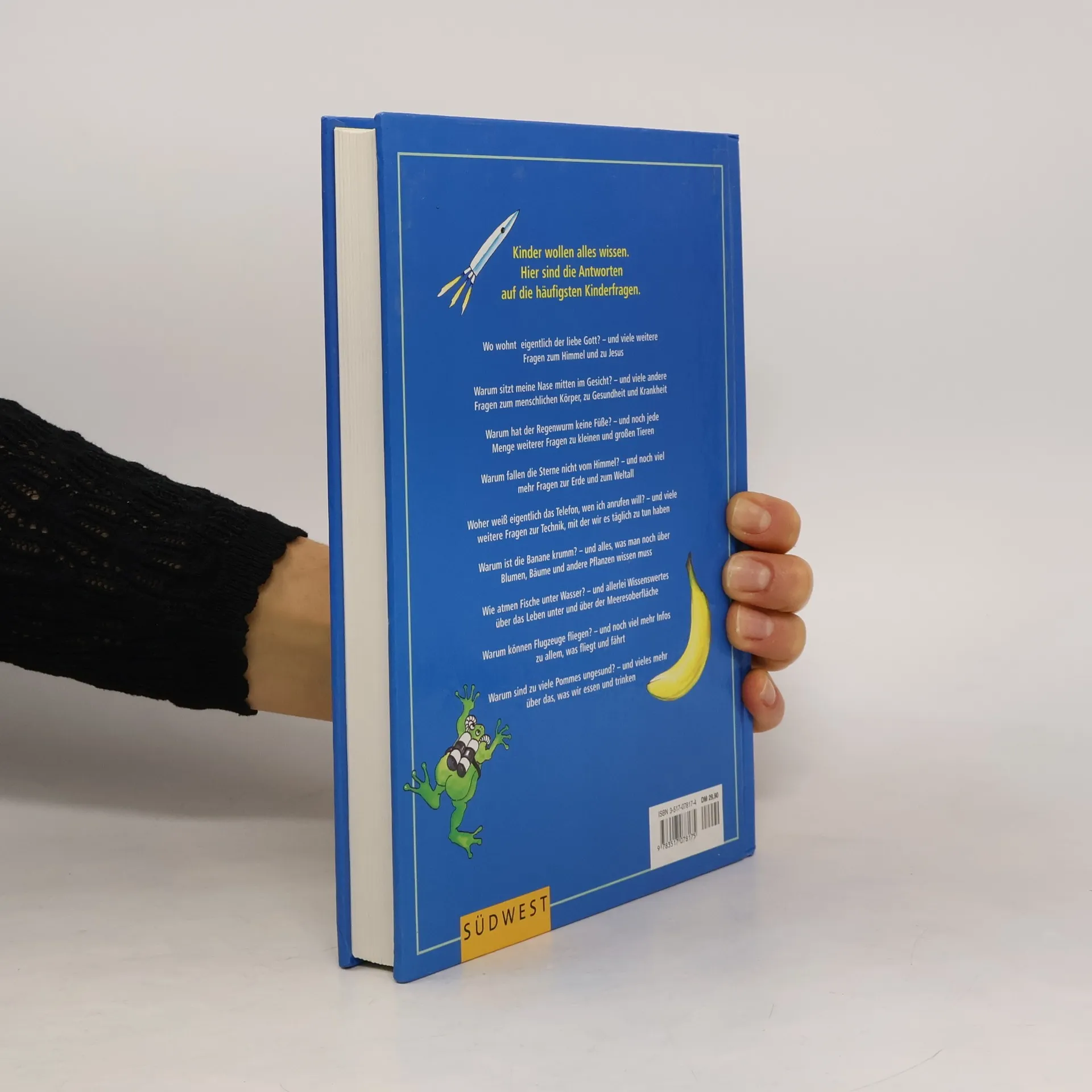 Spätstens wenn Kinder vier Jahre alt sind, beginnen sie damit, ihren Eltern „Löcher in den Bauch“ zu fragen. Weshalb ist der Himmel blau? Wieso fallen die Sterne nicht vom Himmel? Kann der Regenwurm auch sehen? Solche und viele andere Fragen prasseln auf genervte Erwachsene ein, und die haben nicht immer eine passende Antwort parat. Der Autor unseres fröhlichen Ratgebers hat sich die Mühe gemacht, eine Vielzahl typischer, aber auch manchmal etwas abwegiger Kinderfragen zu sammeln und dazu Antworten aufzuschreiben, die einerseits sachlich exakt sind, andererseits aber auch dem kindlichen Verständnis gerecht werden. So lernen alle dabei - die Kinder, die Welt zu verstehen und die Eltern, wie man manchmal komplizierte Sachverhalte verständlich „rüberbringt“. Und Spaß haben beide an den witzigen Illustrationen, die zugleich das Verständnis erleichtern.