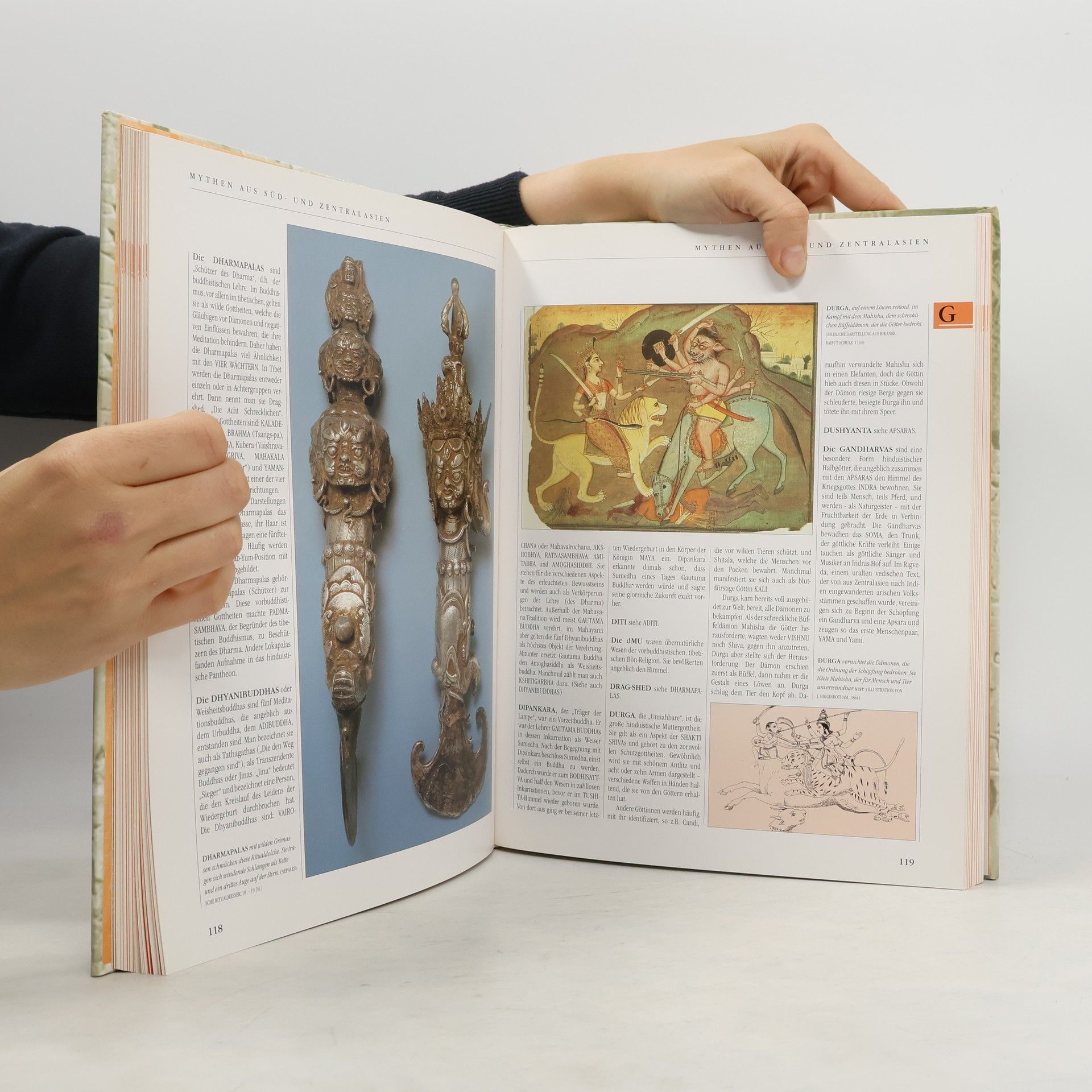 Ein kompetenter Führer durch die Mythen und Legenden des Ostens, vom alten Ägypten bis hin zur Bilderwelt Japans. Über 500 alphabetisch geordnete Einträge beschreiben die wichtigsten mythologischen Figuren jeder Kultur sowie ihre Bedeutung für die jeweilige Zivilisation. Besondere Themenseiten zeigen die Symbole jedes Kulturkreises auf, z.B. die mythischen Bauwerke in Ägypten und Babylon, die Heiligen Flüsse Indiens oder die Sieben Glücksgötter Japans. Hervorragend bebildert mit über 500 Illustrationen, welche die Mythologie des Vorderen Orients ebenso eindringlich darstellen wie die Zentral- und Ostasiens und dabei die aktuelle Bedeutung dieser mythischen Figuren verdeutlichen. Mythen aus Vorderasien Heilige Tiere Mythen von der Flut Schlangen und Drachen Tore zu den Göttern Unterwelten Sterbende und wieder geborenen Götter Helden und Ziele Engel und Djinn Mythen aus Süd- und Zentralasien Heilige Berge Bodhisattvas Tirthamkaras Die Avatare Vishnus Heilige Flüsse Die Muttergottheit Dhyanibuddhas Das Leben des Buddha Mythen aus Ostasien Yin und Yang Schöpfungsmythen Die Acht Unsterblichen Die Schamanen der Mongolei Chinesische Drachen Die Shichi Fukujin Dämonen Chinas heilige Gipfel Stammbäume