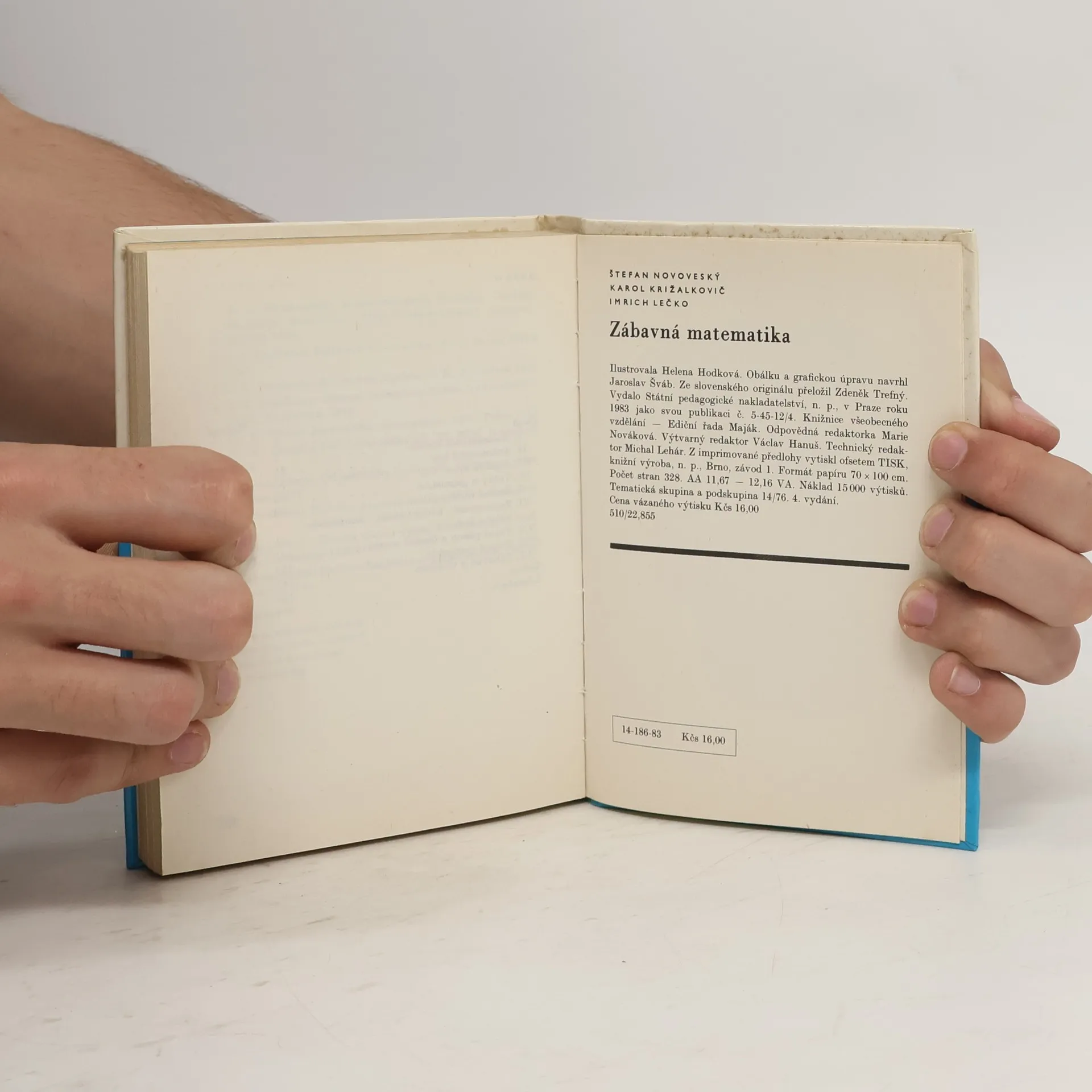 Matematické hry, hříčky a úkoly. Určeno žákům gymnázií a středních odborných škol. Hlavním posláním je vzbudit zájem o matematiku a učinit tento abstraktní předmět zajímavým a poutavým. V druhé části knihy je řešení.