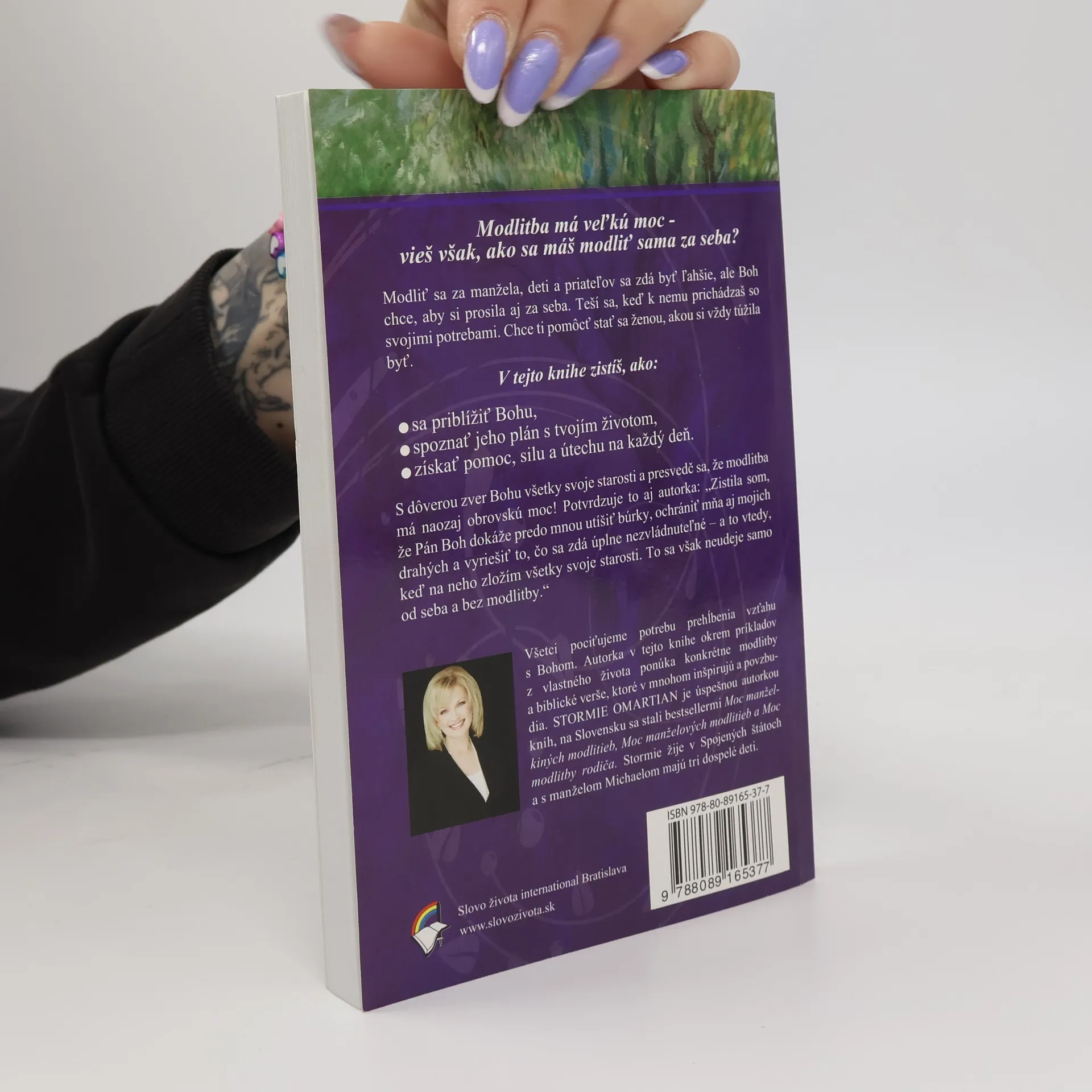 Modliť sa za manžela, deti a priateľov sa zdá byť ľahšie, ale Boh chce, aby si prosila aj za seba. Teší sa, keď k nemu prichádzaš so svojimi potrebami. Chce ti pomôcť stať sa ženou, akou si vždy túžila byť. V tejto knihe zistíš, ako sa priblížiť Bohu, ako spoznať jeho plán s tvojím životom a ako získať pomoc, silu a útechu na každý deň. S dôverou zver Bohu všetky svoje starosti a presvedč sa, že modlitba má naozaj obrovskú moc! Potvrdzuje to aj autorka: „Zistila som, že Pán Boh dokáže predo mnou utíšiť búrky, ochrániť mňa aj mojich drahých a vyriešiť to, čo sa zdá úplne nezvládnuteľné – a to vtedy, keď na neho zložím všetky svoje starosti. To sa však neudeje samo od seba a bez modlitby.“ Autorka v tejto knihe okrem príkladov z vlastného života ponúka konkrétne modlitby a biblické verše, ktoré v mnohom inšpirujú a povzbudia. Stormie Omartian je úspešnou autorkou kníh, na Slovensku sa stali bestsellermi Moc manželkiných modlitieb, Moc manželových modlitieb a Moc modlitby rodiča. Stormie žije v Spojených štátoch a s manželom Michaelom majú tri dospelé deti.