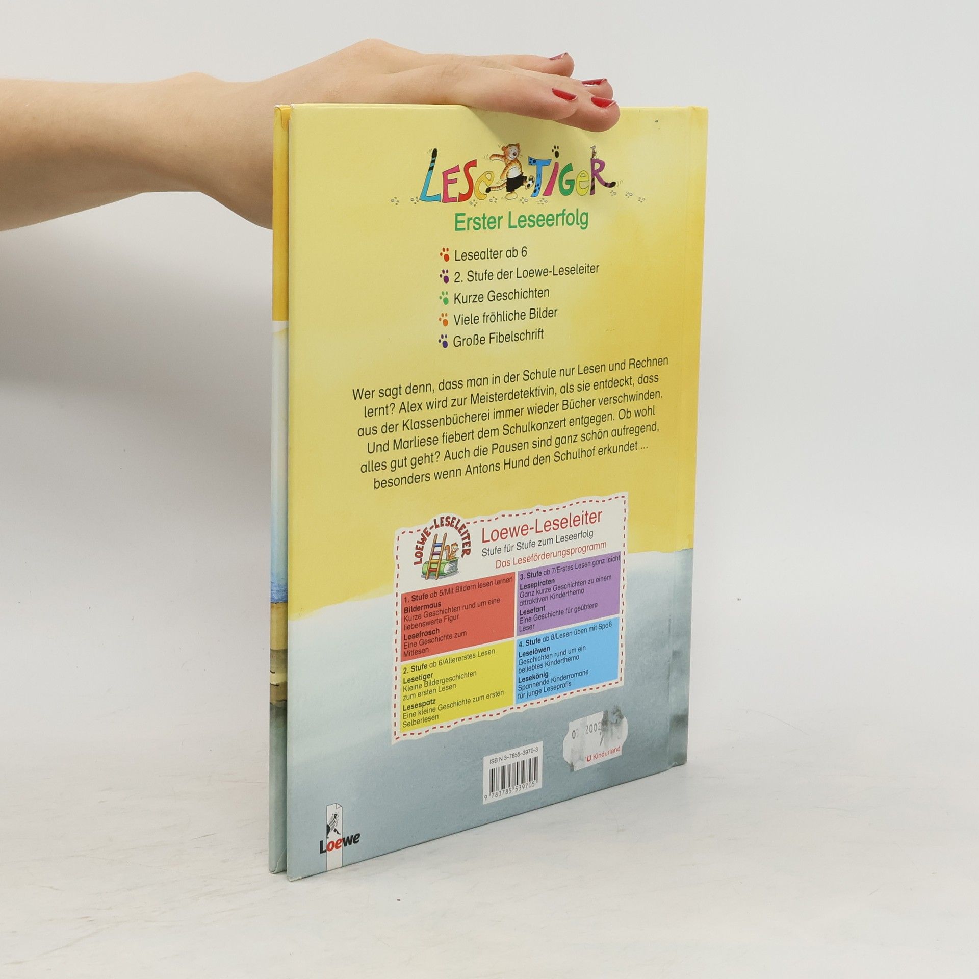 Lesealter ab 6 2. Stufe der Loewe-Leseleiter Kurze Geschichten Viele fröhliche Bilder Große Fibelschrift Wer sagt denn, dass man in der Schule nur Lesen und Rechnen lernt? Alex wird zur Meisterdetektivin, als sie entdeckt, dass aus der Klassenbücherei immer wieder Bücher verschwinden. Und Marliese fiebert dem Schulkonzert entgegen. Ob wohl alles gut geht? Auch die Pausen sind ganz schön aufregend, besonders wenn Antons Hund den Schulhof erkundet.