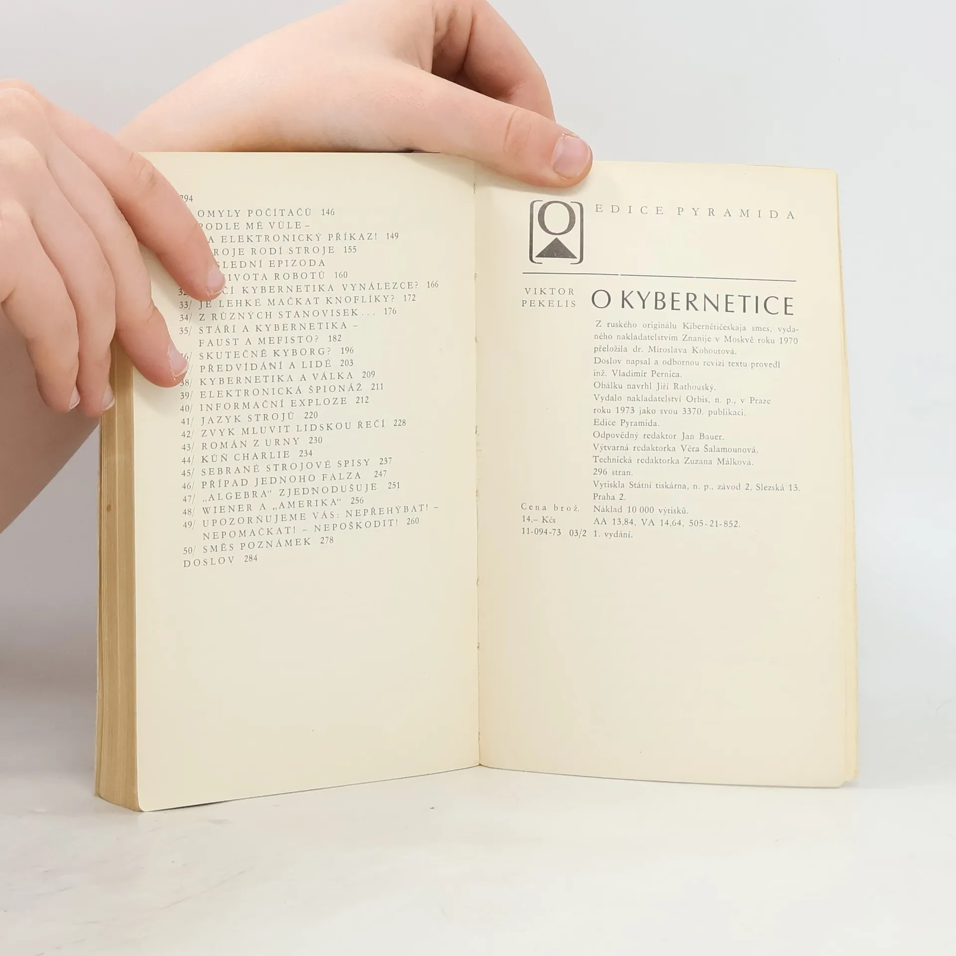 V populárně vědecké knížce se autor pokouší naznačit hraniční možnosti kybernetiky, stále více pronikající do dalších vědních oborů. Poutavě vypráví o myšlenkovém přínosu kybernetiky, o kybernetické technice, která umožňuje využití automatizace, o metodologických problémech kybernetiky aj. Srovnává možnosti stroje a člověka, věnuje pozornost jazyku strojů, informační explozi, využívání kybernetických metod a techniky při řízení národního hospodářství a řadě dalších zajímavých otázek.