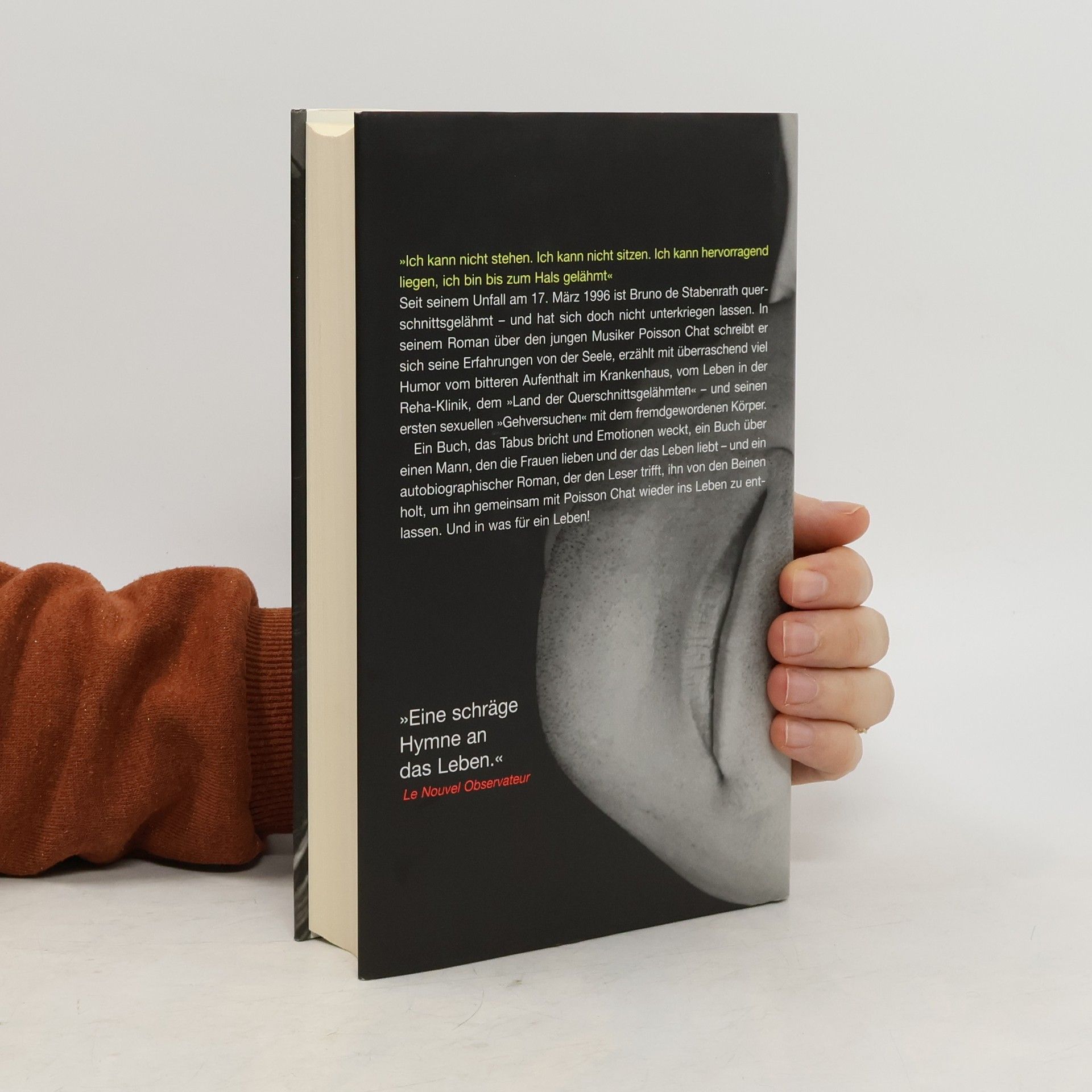 Als Poisson Chat, Musiker, Schauspieler und Liebhaber, nach einem Unfall aus dem Koma erwacht, wird er mit einer schrecklichen Diagnose konfrontiert: Er ist querschnittsgelähmt. Wird es ihm gelingen, sein exzessives Leben weiterzuführen, zu lieben, ja, geliebt zu werden? Ein autobiographischer Roman, der den Leser trifft, ihn von den Beinen holt, um ihn gemeinsam mit Poisson Chat wieder ins Leben zu entlassen. Und in was für ein Leben! Als Poisson Chat, Musiker, Schauspieler und Liebhaber, nach einem Unfall aus dem Koma erwacht, wird er mit einer schrecklichen Diagnose konfrontiert: Er ist querschnittsgelähmt. Wird es ihm gelingen, sein exzessives Leben weiterzuführen, zu lieben, ja, geliebt zu werden? Ein autobiographischer Roman, der den Leser trifft, ihn von den Beinen holt, um ihn gemeinsam mit Poisson Chat wieder ins Leben zu entlassen. Und in was für ein Leben!