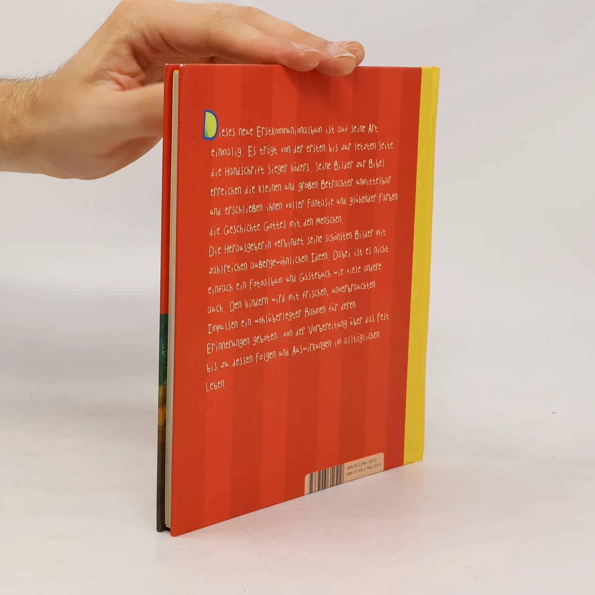Dieses Erstkommunionalbum ist auf seine Art einmalig. Es trägt von der ersten bis zur letzten Seite die Handschrift Sieger Köders. Kaum ein Maler spricht Kinder so an wie er. Seine Bilder zur Bibel erreichen die kleinen und großen Betrachter unmittelbar und erschließen ihnen voller Fantasie und glühender Farben die Geschichte Gottes mit den Menschen. Die Herausgeberin verbindet seine schönsten Bilder mit zahlreichen außergewöhnlichen Ideen. Den Kindern wird mit frischen, unverbrauchten Impulsen ein wohlüberlegter Rahmen für deren Erinnerung geboten: von der Vorbereitung über das Fest bis zu dessen Auswirkungen im alltäglichen Leben.