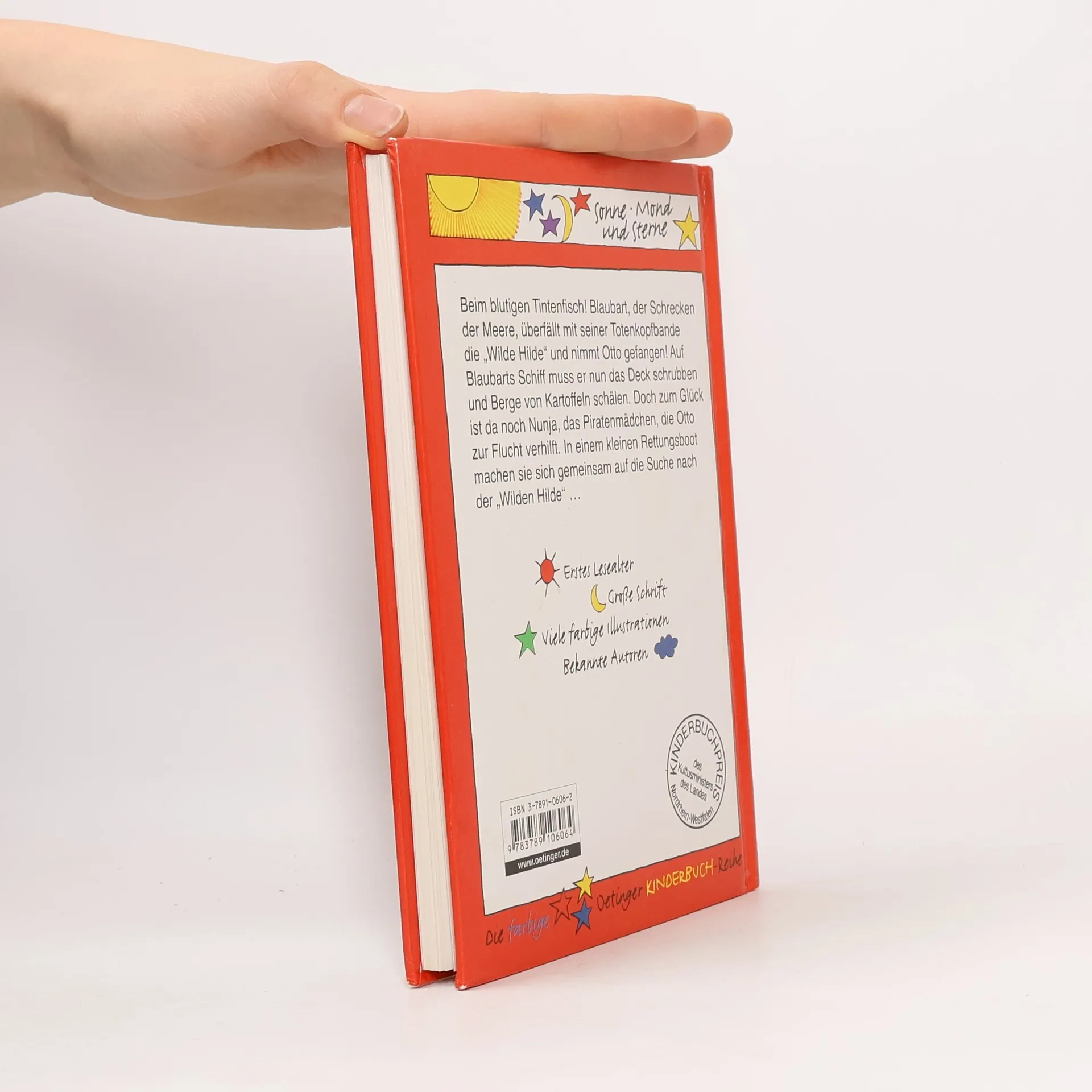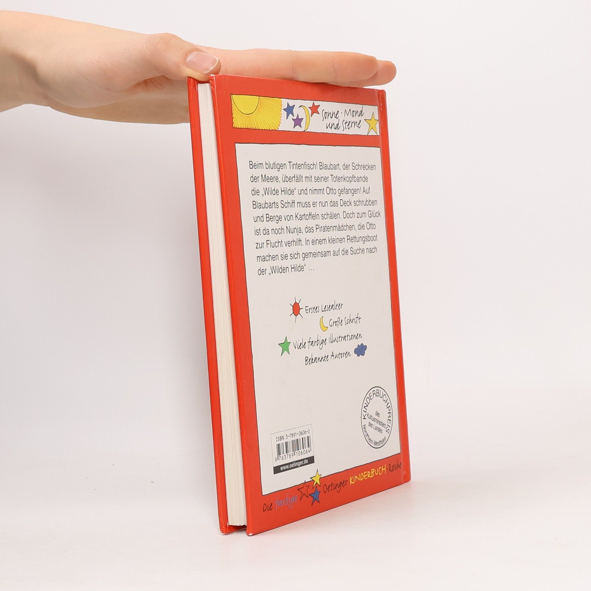 Beim Tintenfisch! Otto, der kleine Pirat, ist in Gefahr: Blaubart, der Schrecken aller Meere, überfällt mit seiner Bande Ottos Schiff und nimmt ihn gefangen Jetzt muss Otto für Blaubart das Deck schrubben und Kartoffeln schälen. Doch zum Glück gibt es Nunja, das Piratenmädchen. Sie verhilft Otto zur Flucht. Das zweite Abenteuer von Otto, dem kleinen Piraten.