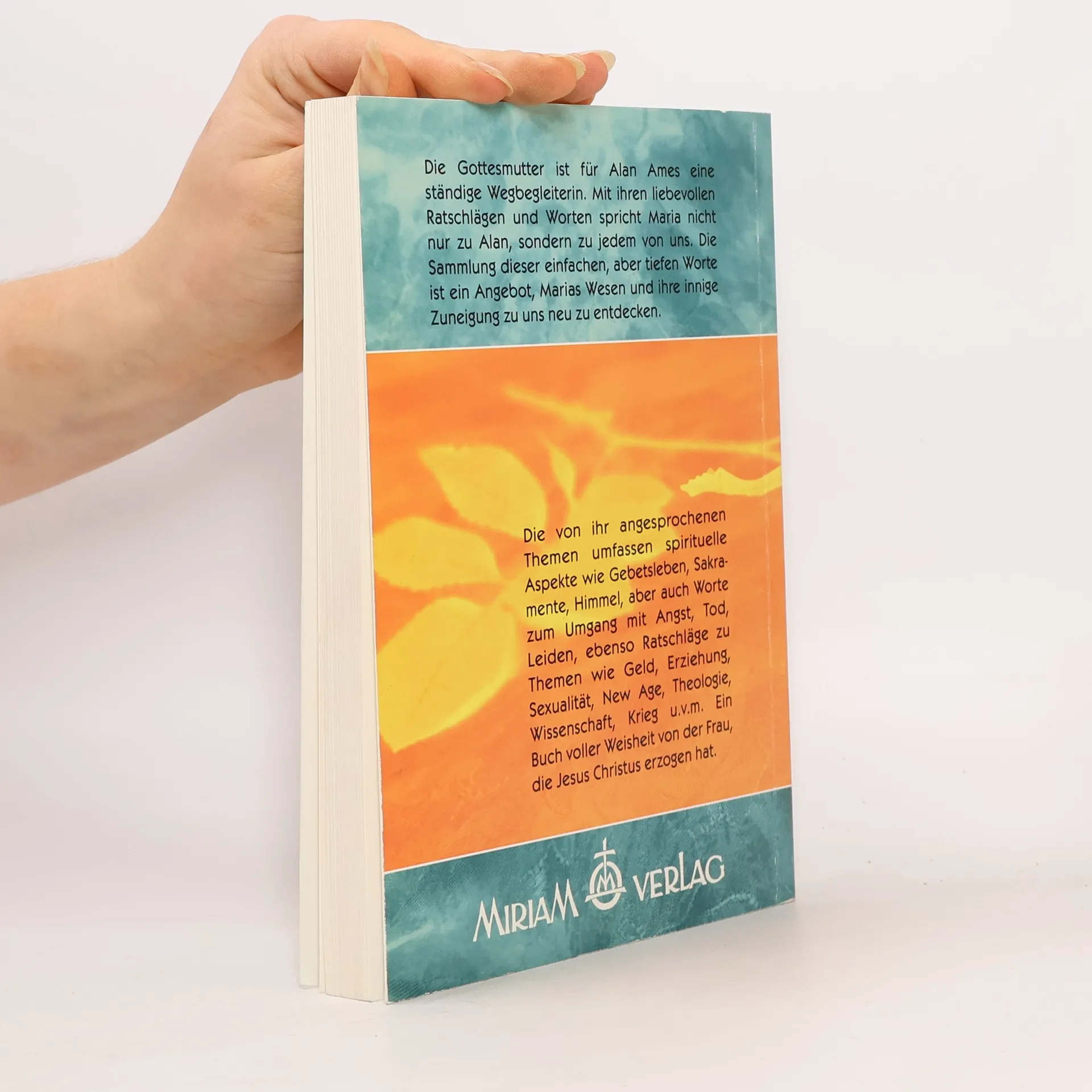 Bis heute ist die Gottesmutter Alans tägliche Begleiterin, die ihm mit Rat und Tat zur Seite steht, gerade auch in schweren Lagen. Diese Worte der Mutter Gottes wurden zusammgestellt für dieses Buch, das in kleinen Schritten den Weg der Tugend zeigt und mitgeht. Illustriert wird es durch einige Rückblicke der Gottesmutter auf Situationen, die sie mit dem kleinen Jesus und mit Josef erlebte. Die Sammlung dieser täglichen kurzen Worte ist ein Angebot, Marias Wesen und die Tiefe ihrer Zuneigung zu jedem einzelnen von uns selbst zu erleben. Die von ihr angesprochenen Themen umfassen spirituelle Aspekte wie Gebetsleben, Sakramente, Himmel, aber auch Worte zum Umgang mit Angst, Tod, Leiden, ebenso Ratschläge zu Themen wie Geld, Kindererziehung, Sexualität, New Age, Theologie, Wissenschaft, Zukunft, Kriege, Tierliebe u. v. m. Ein Buch für jeden, der praktisch umsetzbare Worte der Weisheit von der Frau sucht, die Jesus Christus erzogen hat.