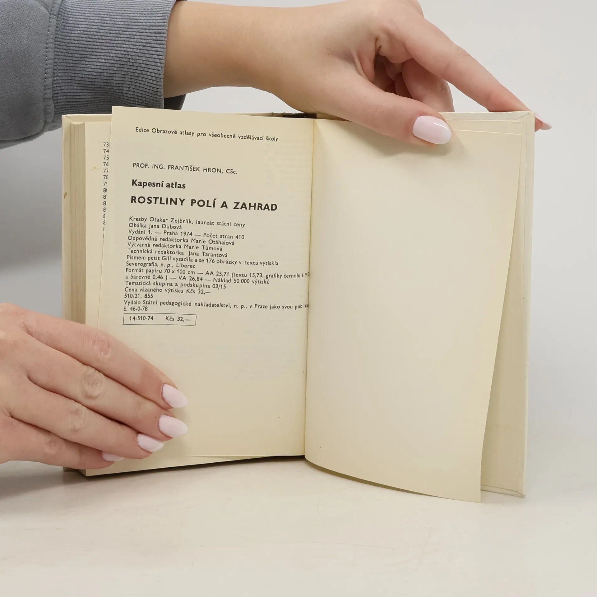 První díl kapesního atlasu rostlin, určený jako učební pomůcka pro žáky středních škol, podává přehled významných rostlin, vyskytujících se na našich polích a zahradách. 1. vydání. Kapesní atlas pomáhající určit rostliny nacházející se na polích a v zahradách. V obecné části atlasu je podána fytoekologická a fytocenologická charakteristika polí a zahrad, zastoupených rostlinných čeledí, obrysový klíč k určování a terminologický slovníček. Obsáhlejší speciální část přináší popis a vyobrazení 151 významných rostlinných druhů polí a zahrad. Kromě botanického popisu nadzemních i podzemních orgánů, jenž umožňuje spolehlivé určení rostliny, uvádí atlas také biologické vlastnosti druhů, jejich požadavky na prostředí, výskyt a rozšíření. Zmiňuje se rovněž o užitečnosti nebo škodlivosti jednotlivých rostlin a možnostech jejich hospdářského využití.