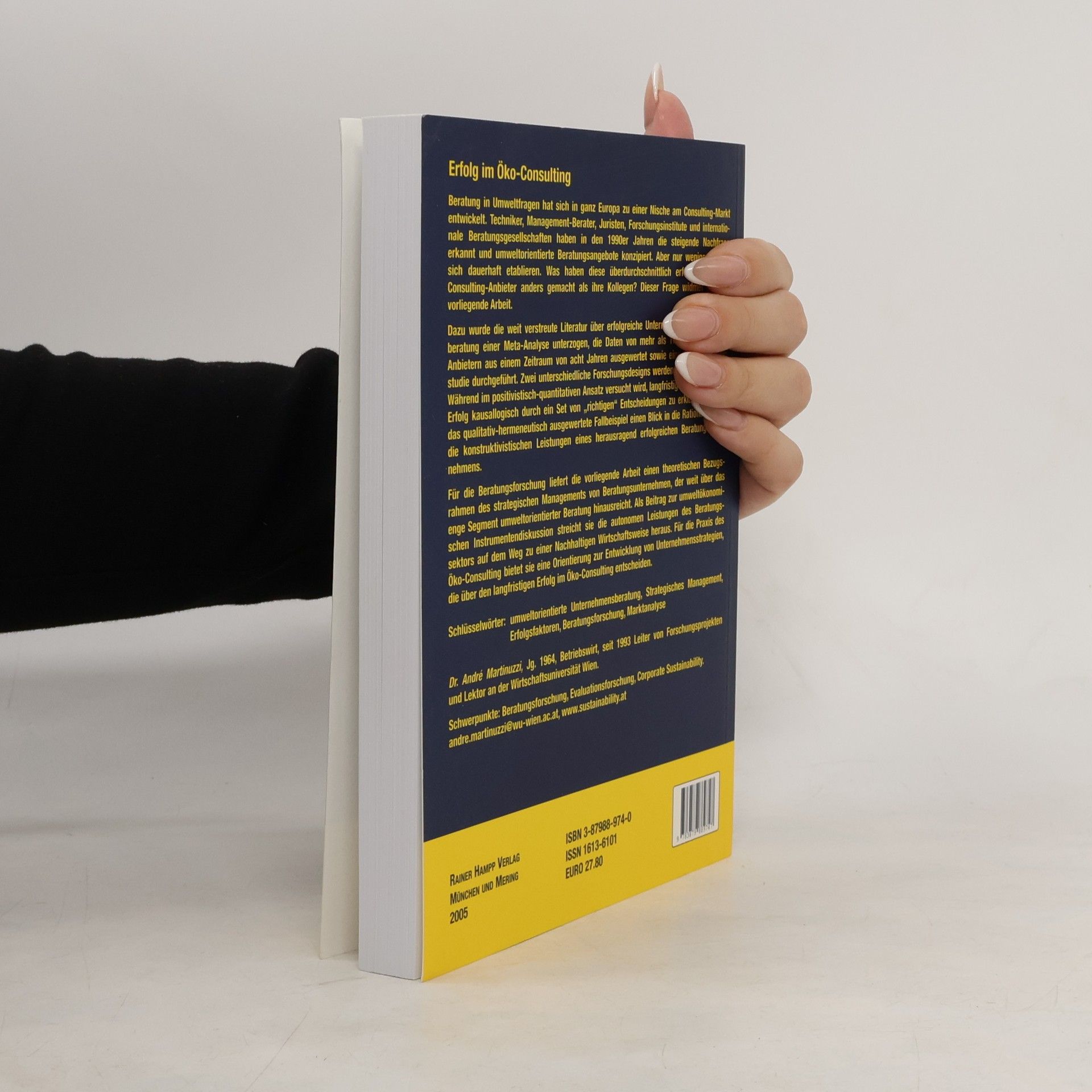 Beratung in Umweltfragen hat sich in ganz Europa zu einer Nische am Consulting-Markt entwickelt. Techniker, Management-Berater, Juristen, Forschungsinstitute und internationale Beratungsgesellschaften haben in den 1990er Jahren die steigende Nachfrage erkannt und umweltorientierte Beratungsangebote konzipiert. Aber nur wenige konnten sich dauerhaft etablieren. Was haben diese überdurchschnittlich erfolgreichen Öko-Consulting-Anbieter anders gemacht als ihre Kollegen? Dieser Frage widmet sich die vorliegende Arbeit. Dazu wurde die weit verstreuten Literatur über erfolgreiche Unternehmens- und Umweltberatung einer Meta-Analyse unterzogen, die Daten von mehr als 100 Öko-Consulting-Anbietern aus einen Zeitraum von acht Jahren ausgewertet sowie eine qualitative Fallstudie durchgeführt. Dabei werden zwei unterschiedliche Forschungsdesigns kontrastiert: Während im positivistisch-quantitativen Ansatz versucht wird, langfristigen ökonomischen Erfolg kausallogisch durch ein Set von „richtigen“ Entscheidungen zu erklären, eröffnet das qualitativ-hermeneutisch ausgewertete Fallbeispiel einen Blick in die Rationalität und die konstruktivistischen Leistungen eines herausragend erfolgreichen Beratungsunternehmens. Für die Beratungsforschung liefert die vorliegende Arbeit einen theoretischen Bezugsrahmen des strategischen Managements von Beratungsunternehmen, der weit über das enge Segment umweltorientierter Beratung hinausreicht. Als Beitrag zur umweltökonomischen Instrumentendiskussion streicht sie die autonomen Leistungen des Beratungssektors auf dem Weg zu einer Nachhaltigen Wirtschaftsweise heraus. Für die Praxis des Öko-Consulting bietet sie eine Orientierung zur Entwicklung von Unternehmensstrategien, die über den langfristigen Erfolg im Öko-Consulting entscheiden.