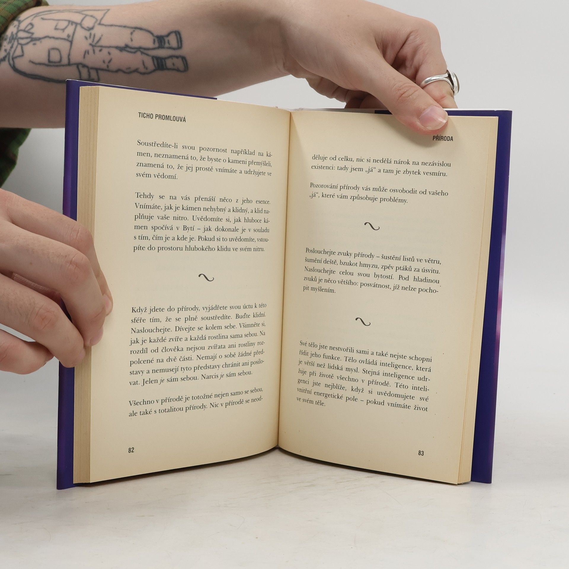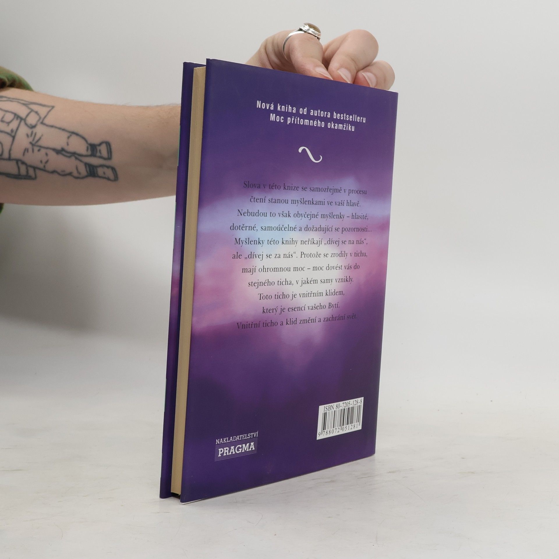 Esenci Tolleova poselství je jednoduché pochopit: Když se spojíme s tichem ve svém nitru, překročíme hranice své aktivní mysli a emocí a objevíme hloubku trvalého klidu a spokojenosti. Kniha je rozdělena do deseti kapitol, z nichž každá je mozaikou stručně vyjádřených myšlenek, ale pokud je čtete jako celek, mají hluboce transformativní účinek.