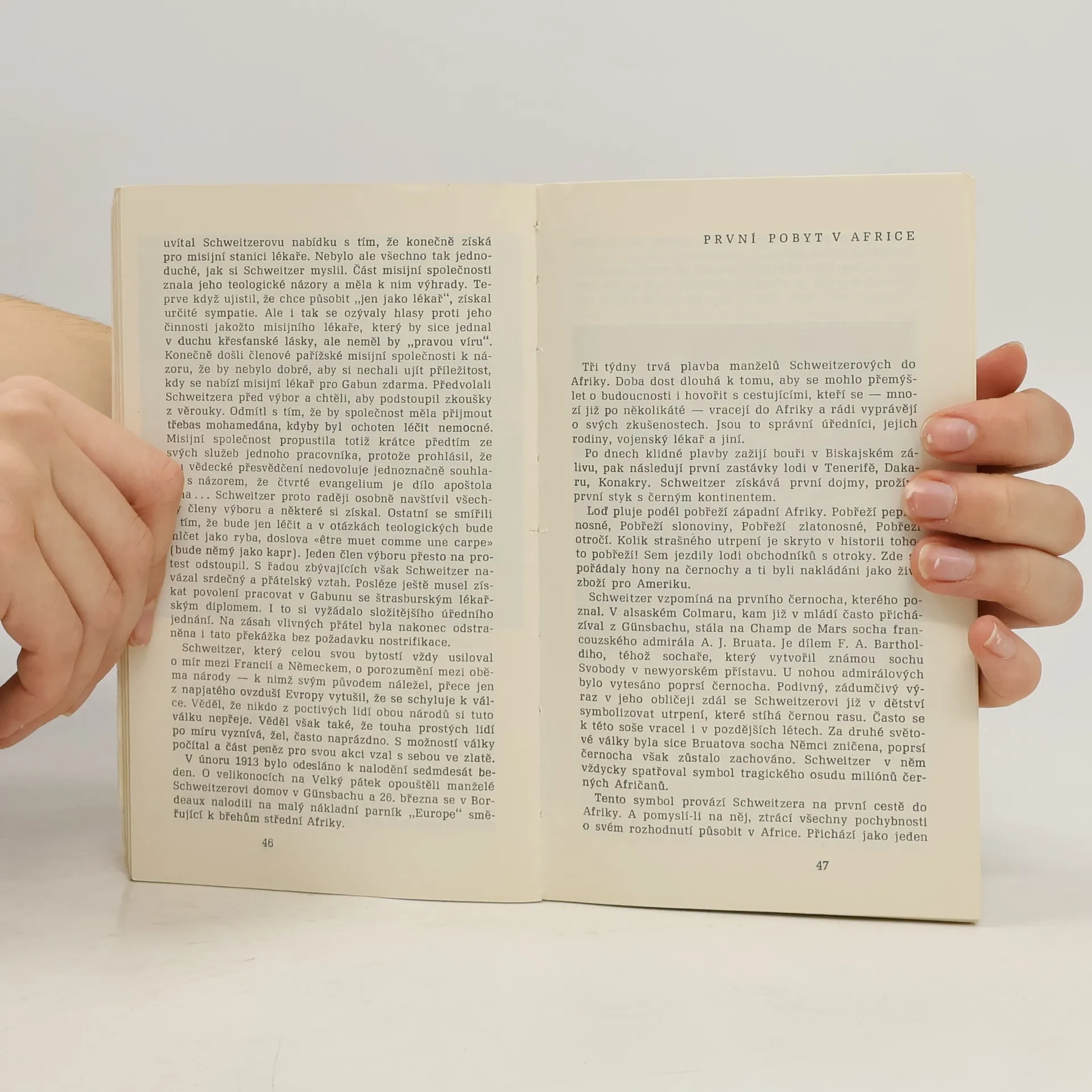 Monografie přibližuje osobnost člověka, nazývaného nejvýznamnějším humanistou 20. století. Sleduje jeho životní dráhu, v níž obětoval vědeckou kariéru, aby mohl vybudovat a vést nemocnici v Lambaréné v centrální Africe. Líčí, jak opětovně podnikal cesty do Evropy a Ameriky, aby tu přednáškami a koncerty na varhany získal prostředky pro svou nemocnici. Rozebírá i jeho teologické, filosofické, hudebně vědecké, literární a literárněhistorické dílo i jeho spis o stavbě varhan. Humanistické úsilí pak dovršuje jeho boj proti pokusům s jadernými zbraněmi, za nějž dostal Nobelovu cenu míru. Následují ukázky z jeho literárního díla, přednášky a rozhlasového projevu, jakož i soudy o jeho práci. Stať Filosofie a ochrana zvířat z angl. přel. O. F. Babler.