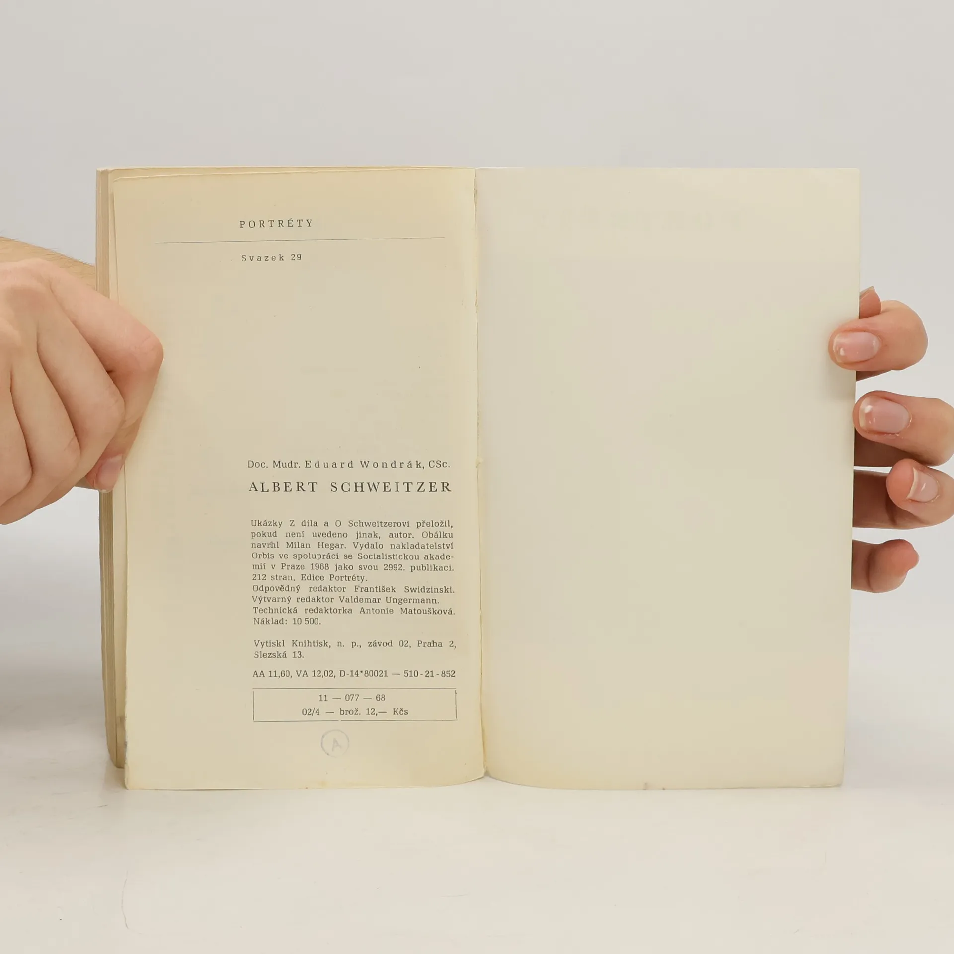 Portréty. Albert Schweitzer, Eduard Wondrák
