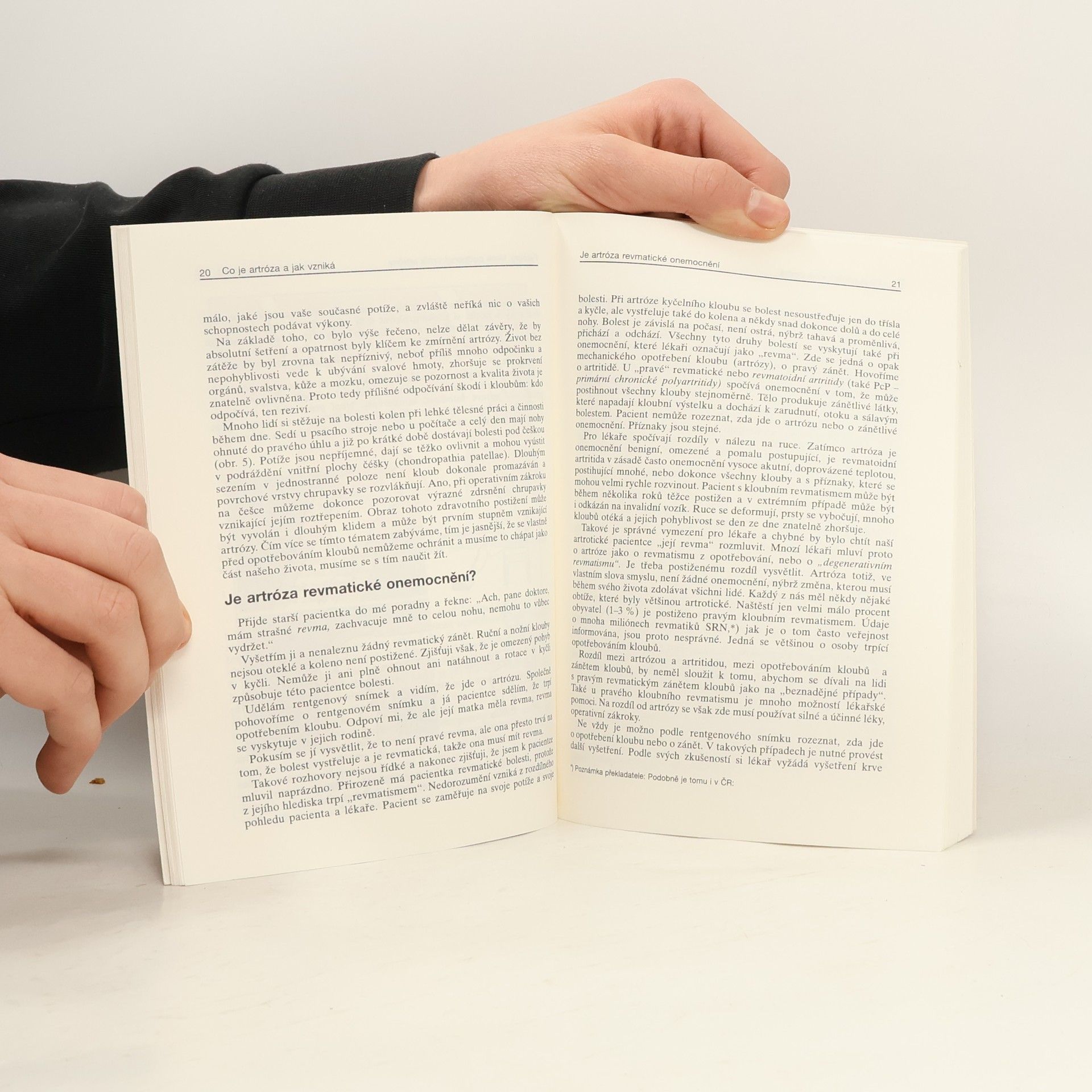 Kniha informuje obšírně o příčinách, vzniku, průběhu a terapii změn na kloubech, vyvolaných jejich opotřebováním. Čtenář dostává především odpověď na otázku, co může sám proti artróze dělat, jak může předejít dalšímu opotřebování a jak aktivně žít i s tímto problémem.