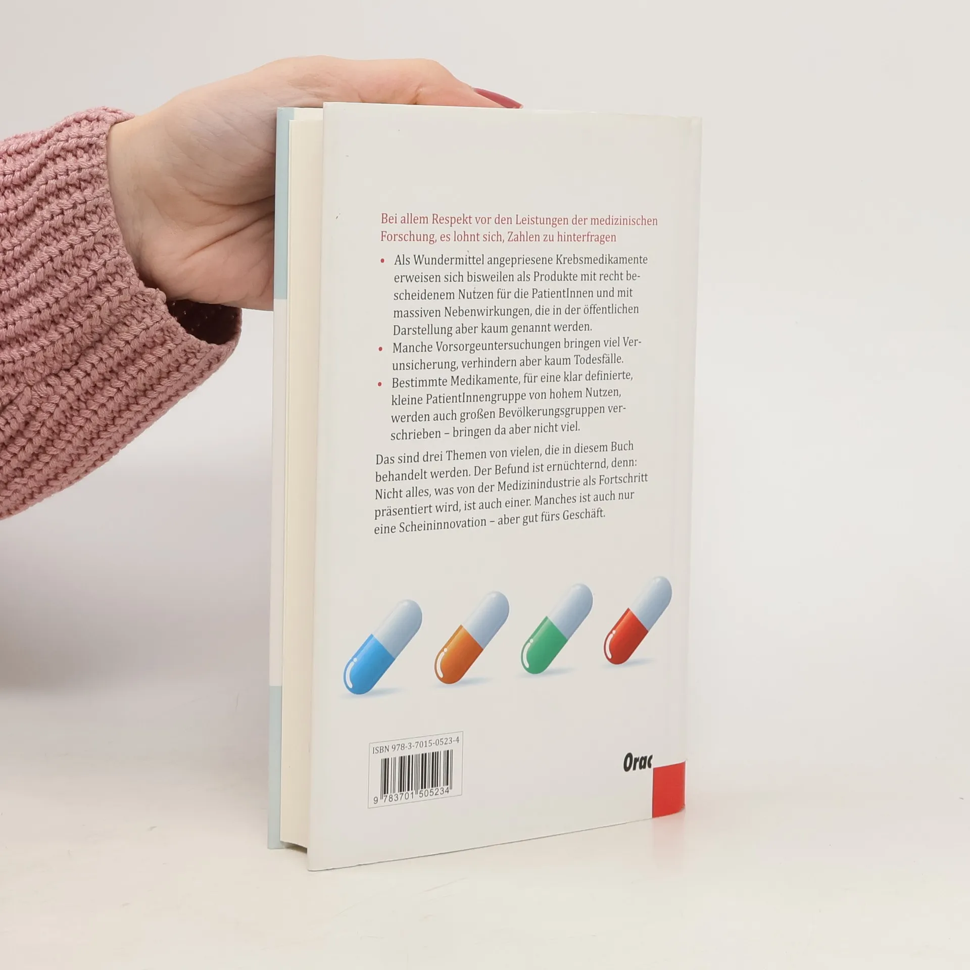 Brisant! Wie die Medizin mit Zahlen jongliert und damit gute Geschäfte macht. Wer profitiert von der Schweinegrippe-Impfung oder der Angst vor Krebs? Möglicherweise einige, die sich impfen lassen, zu Vorsorgeuntersuchungen gehen oder Medikamente einnehmen. Aber auch, natürlich, die (Pharma-)Industrie. Je größer die Angst und je größer der Glaube an die Allmacht der Medizin, umso mehr steigen die Umsätze. Mit Zahlen, so beweist es dieses Buch, kann die Gefahr als sehr groß oder aber auch als nicht besonders beeindruckend dargestellt werden. Nicht schwer zu erraten, welche Auslegung den Umsatz erhöht. Die Autoren und Autorinnen nehmen ganz unterschiedliche medizinische Leistungen unter die Lupe:• Medikamente, die für eine kleine, sehr spezielle Zielgruppe entwickelt wurden, und dann plötzlich auch in der breiten Bevölkerung eingesetzt werden.• Operationsmethoden, die von den Spitälern und Krankenkassen bezahlt werden, obwohl die Studienlage noch recht „dünn“ ist.• Vorsorgeuntersuchungen, deren Nutzen umstritten ist, die aber nichtsdestotrotz großflächig eingesetzt werden.• Negative Studienergebnisse, die nicht publiziert werden, und positive, die dank massiver PR breite Öffentlichkeit finden. Das Buch ist nüchtern, sachlich, fundiert. Wer es gelesen hat, weiß: Nicht alles, was von der Medizinindustrie als Fortschritt präsentiert wird, ist auch einer. Manches ist auch nur eine Scheininnovation – aber gut fürs Geschäft.