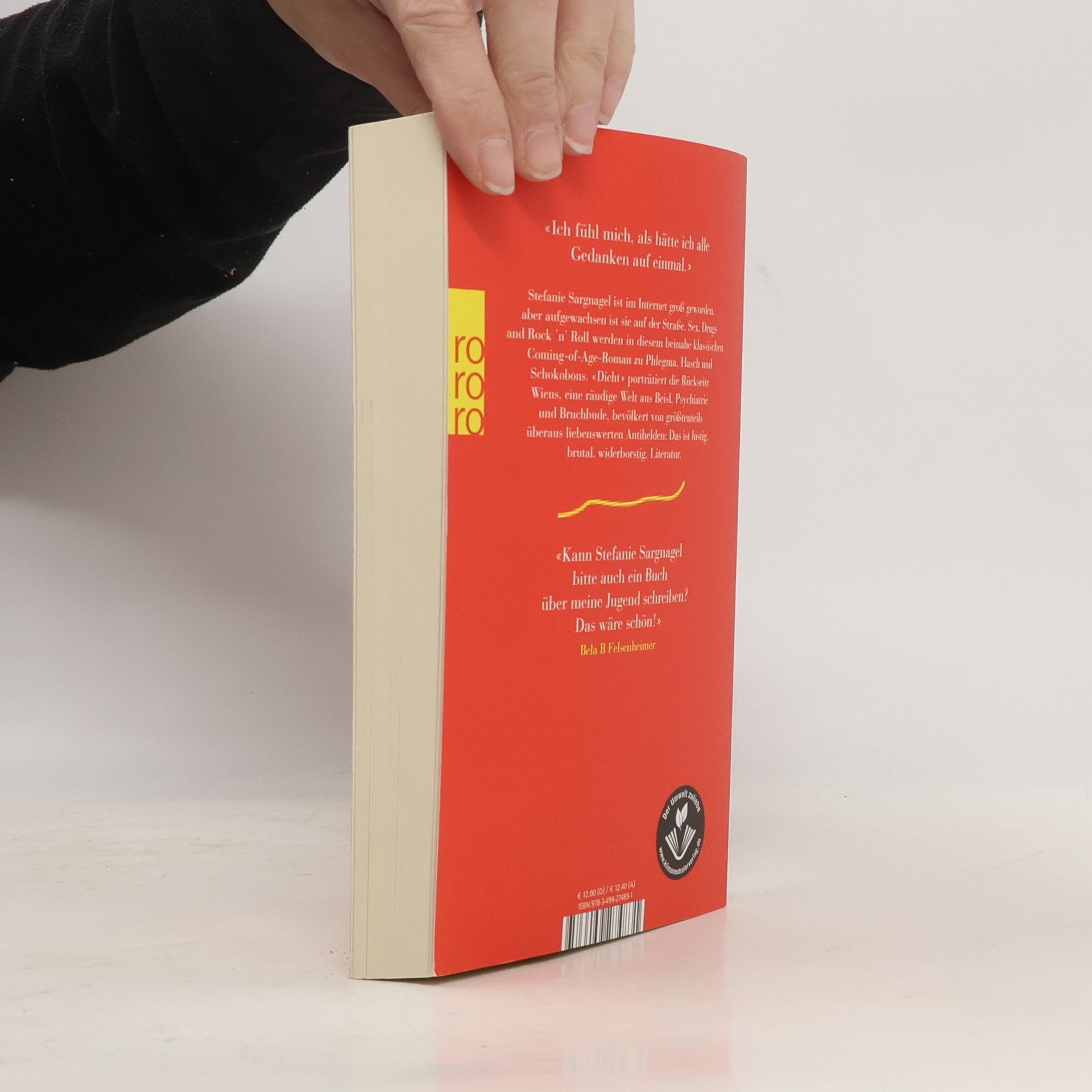 «Ich fühl mich, als hätte ich alle Gedanken auf einmal.» Stefanie Sargnagel ist im Internet groß geworden, aber aufgewachsen ist sie auf der Straße. Sex, Drugs and Rock 'n' Roll werden in diesem beinahe klassischen Coming-of-Age-Roman zu Phlegma, Hasch und Schokobons. «Dicht» porträtiert die Rückseite Wiens, eine räudige Welt aus Beisl, Psychiatrie und Bruchbude, bevölkert von größtenteils überaus liebenswerten Antihelden: Das ist lustig, brutal, widerborstig, Literatur.