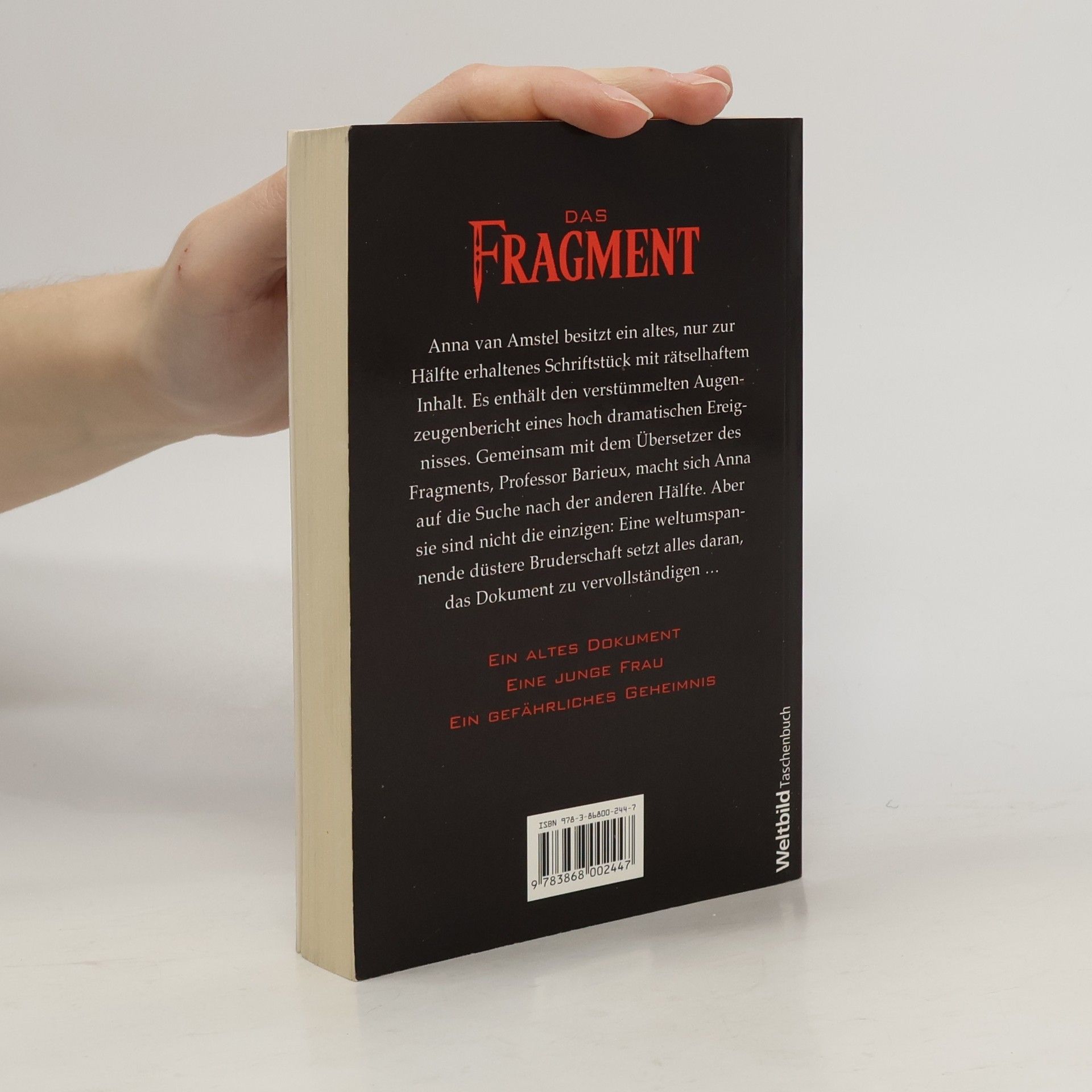 Eine alte Schrift, ein gefährliches Geheimnis Anna van Amstel kommt zu einem nur zur Hälfte erhaltenen Schriftstück. Der Inhalt gibt ihr und Professor Barieux, dem Übersetzer, Rätsel auf. Gemeinsam machen sie sich auf die Suche nach der anderen Hälfte. Doch auch eine gefährliche Bruderschaft jagt dem geheimnisvollen Fragment hinterher.