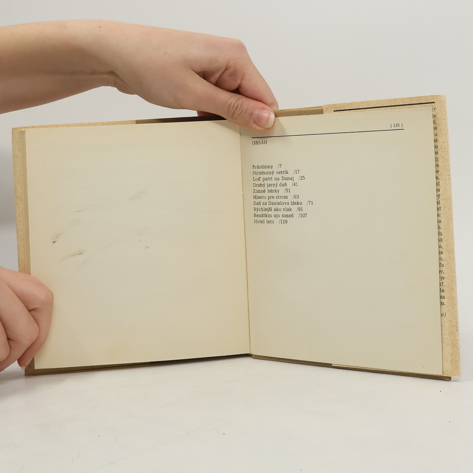 Zbierka poviedok z Bratislavy: Prázdniny, Strieborný vetrík, Loď patrí na Dunaj, Druhý jarný deň, Zimné búrky, Miesto pre strom, Daň za Danielovu lásku, Rýchlejší ako vlak, Renátkin ujo sused, Hotel leto.
