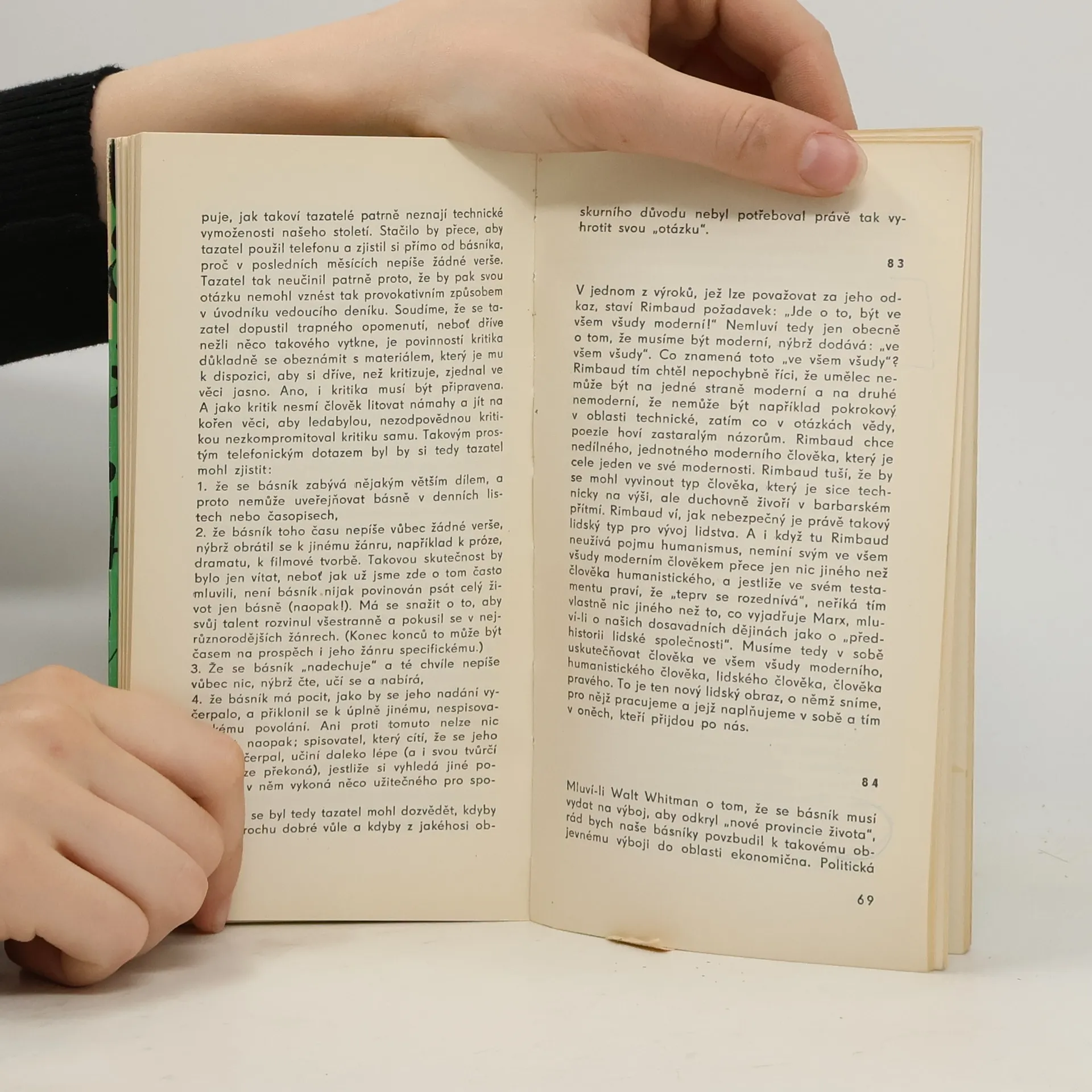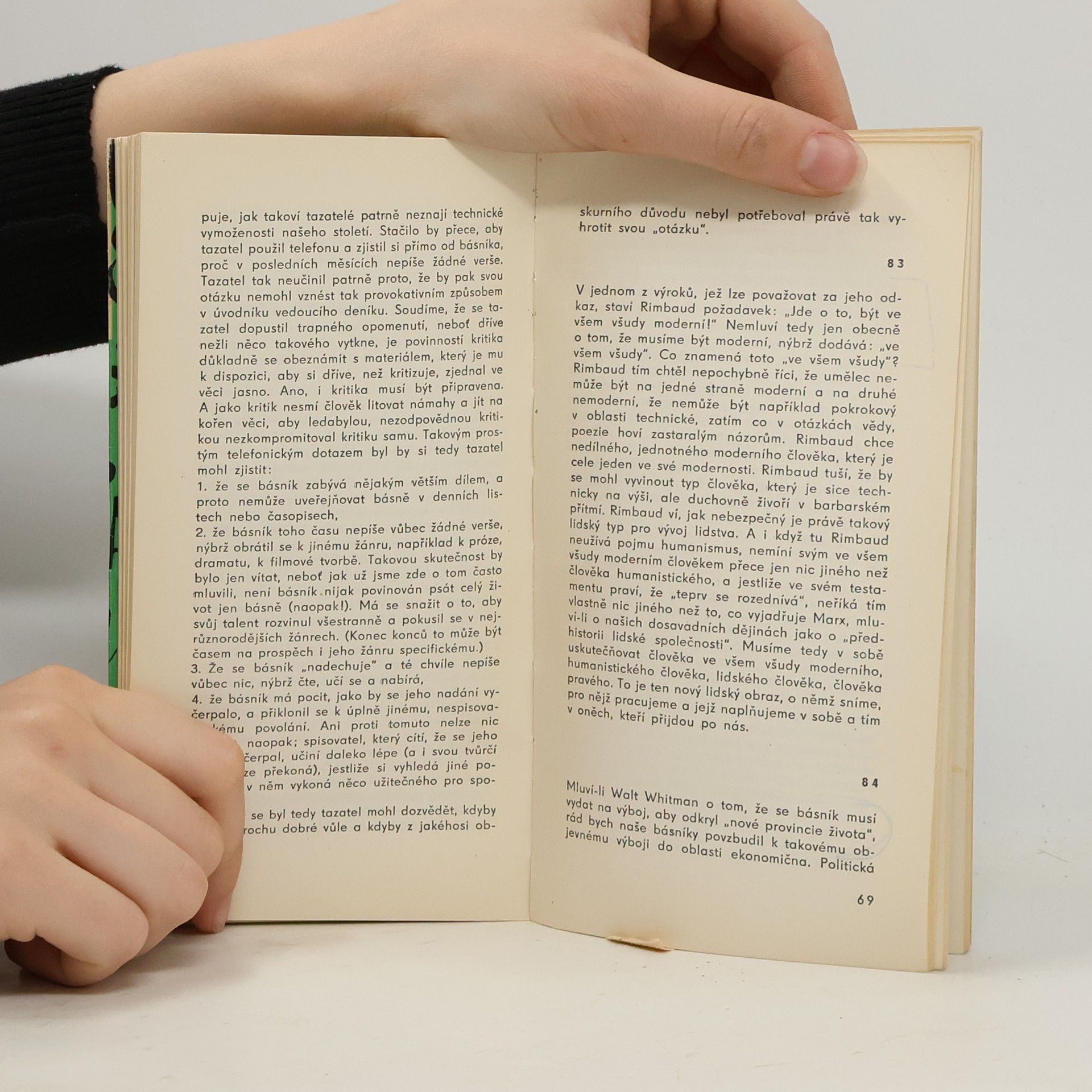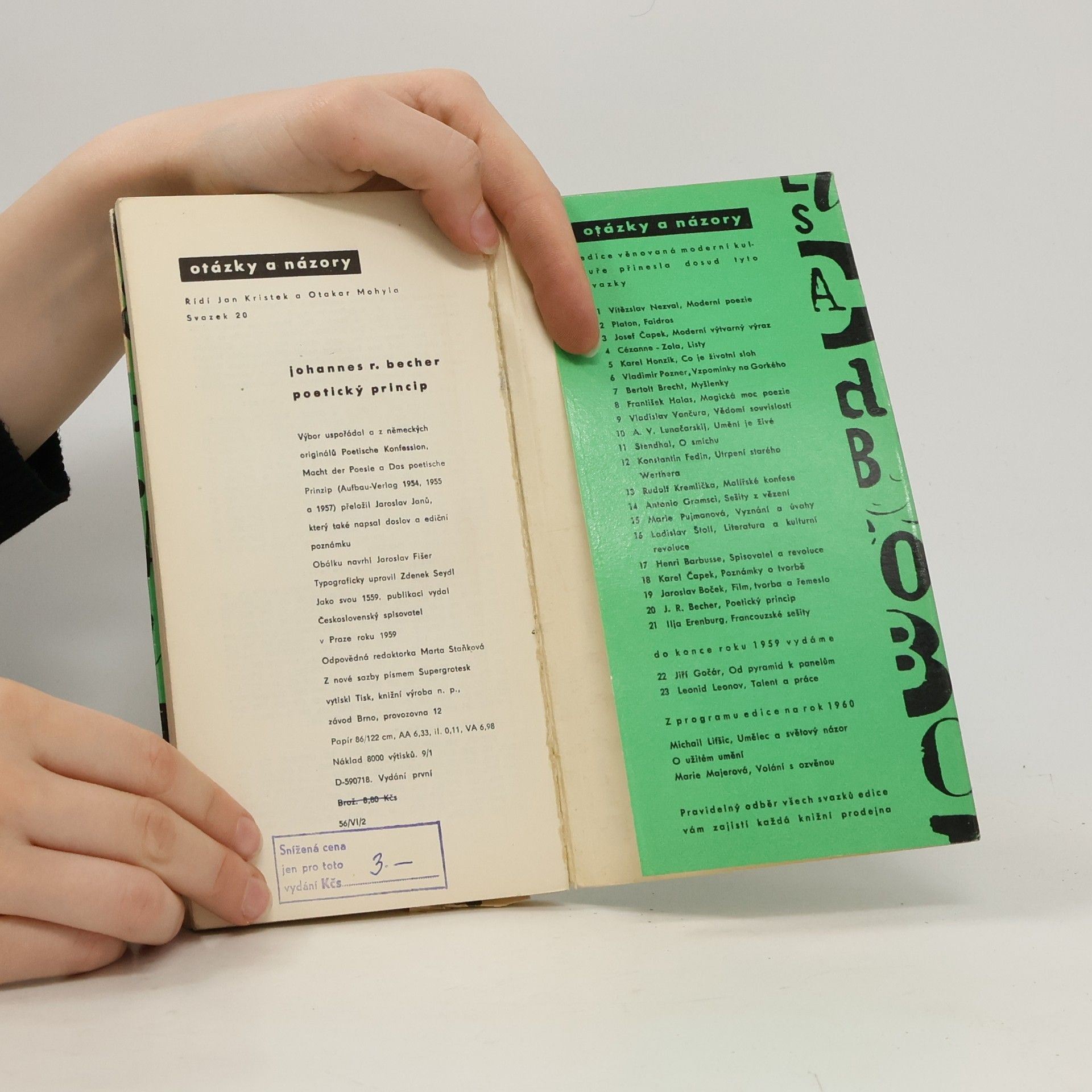 Ve svazku je podán výbor z volně řazených esejí pokrokového německého básníka, který byl od r. 1954 do své smrti r. 1958 ministrem kultury NDR. Vypořádává se s dědictvím fašismu, promýšlí odkaz staré kultury i úkoly soudobé literatury a zaníceně hlásá obnovu poezie, kterou chápe jako"nekonečné spění člověka vzhůru.