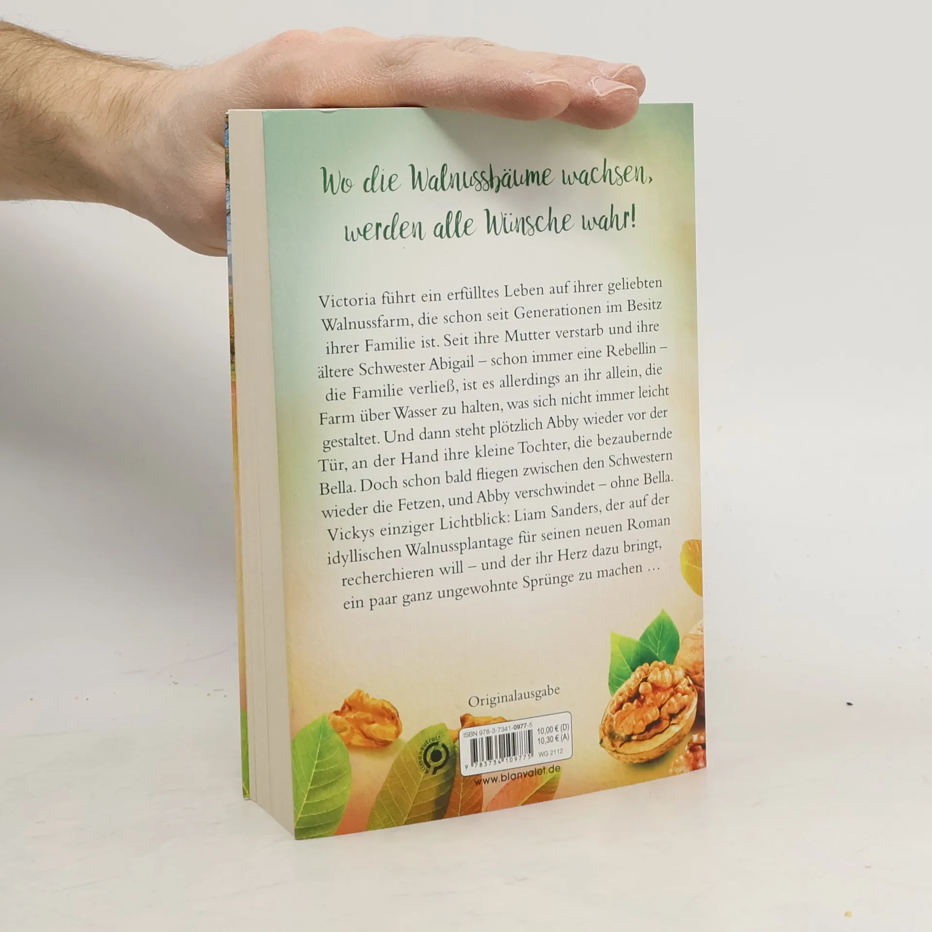 Wo die Walnussbäume wachsen, werden alle Wünsche wahr! Victoria führt ein erfülltes Leben auf ihrer geliebten Walnussfarm, die schon seit Generationen im Besitz ihrer Familie ist. Seit ihre Mutter verstarb und ihre ältere Schwester Abigail – schon immer eine Rebellin – die Familie verließ, ist es allerdings an ihr allein, die Farm über Wasser zu halten, was sich nicht immer leicht gestaltet. Und dann steht plötzlich Abby wieder vor der Tür, an der Hand ihre kleine Tochter, die bezaubernde Bella. Doch schon bald fliegen zwischen den Schwestern wieder die Fetzen, und Abby verschwindet – ohne Bella. Vickys einziger Lichtblick: Liam Sanders, der auf der idyllischen Walnussfarm für seinen neuen Roman recherchieren will – und der ihr Herz dazu bringt, ein paar ganz ungewohnte Sprünge zu machen … Die zauberhafte »Kalifornische Träume«-Reihe bei Blanvalet: 1. Wintervanille2. Orangenträume3. Mandelglück4. Erdbeerversprechen5. Walnusswünsche6. Blaubeerjahre Alle Bände können unabhängig voneinander gelesen werden.