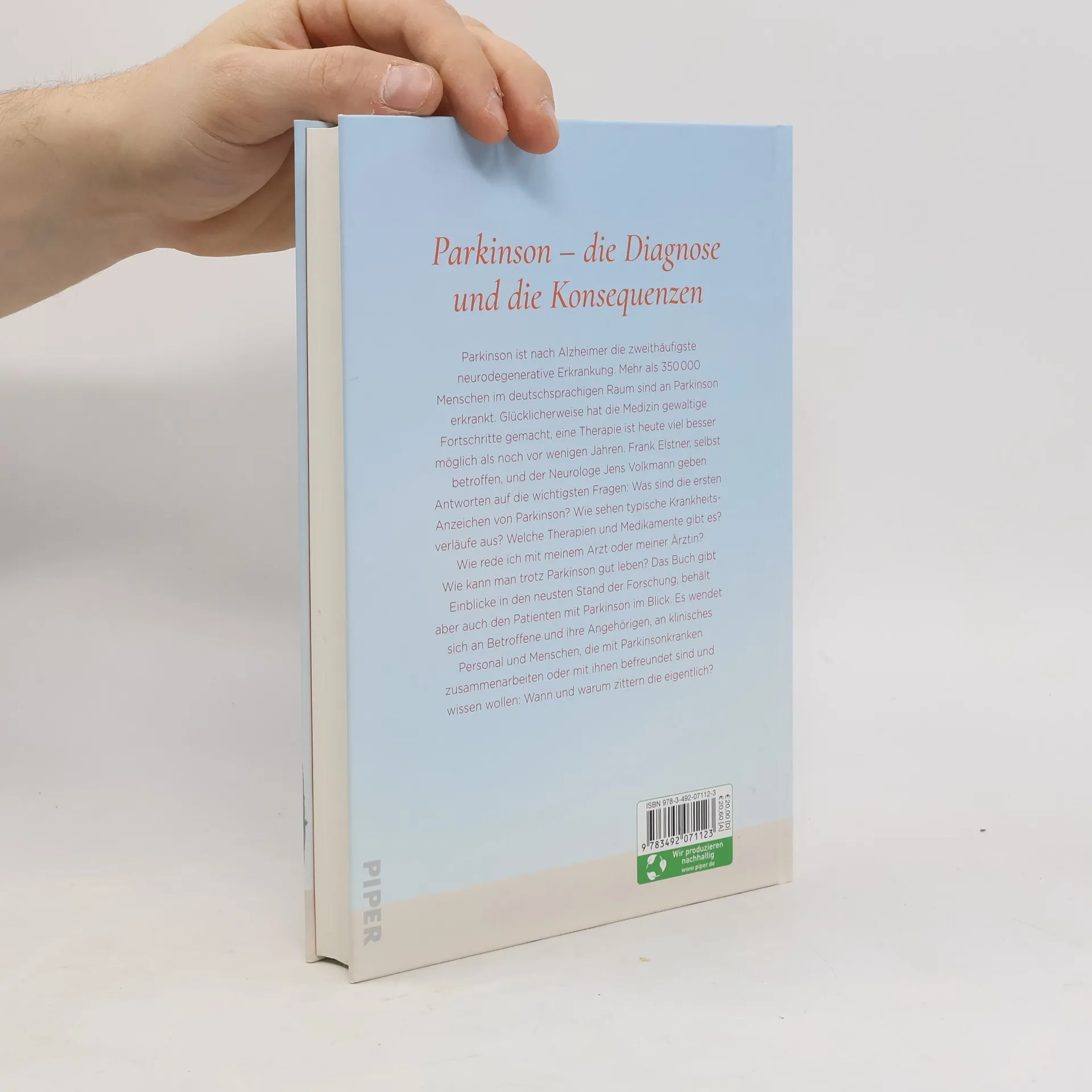 Leben mit Parkinson Parkinson ist nach Alzheimer die zweithäufigste neurodegenerative Erkrankung. Mehr als 350.000 Menschen im deutschsprachigen Raum sind an Parkinson erkrankt. Doch die Medizin hat gewaltige Fortschritte gemacht, eine Therapie ist heute viel besser möglich als noch vor wenigen Jahren. Frank Elstner, selbst betroffen, und der Neurologe Jens Volkmann geben Antworten auf die wichtigsten Fragen: - Was sind die ersten Anzeichen von Parkinson? - Wie ist der Krankheitsverlauf? - Welche Therapien und Medikamente gibt es? - Wie rede ich mit meinem Arzt? - Wie kann man trotz Parkinson gut leben? Das Buch gibt Einblicke in den neusten Stand der Forschung, behält aber auch den Menschen mit Parkinson im Blick. Es wendet sich an Betroffene und ihre Angehörigen.