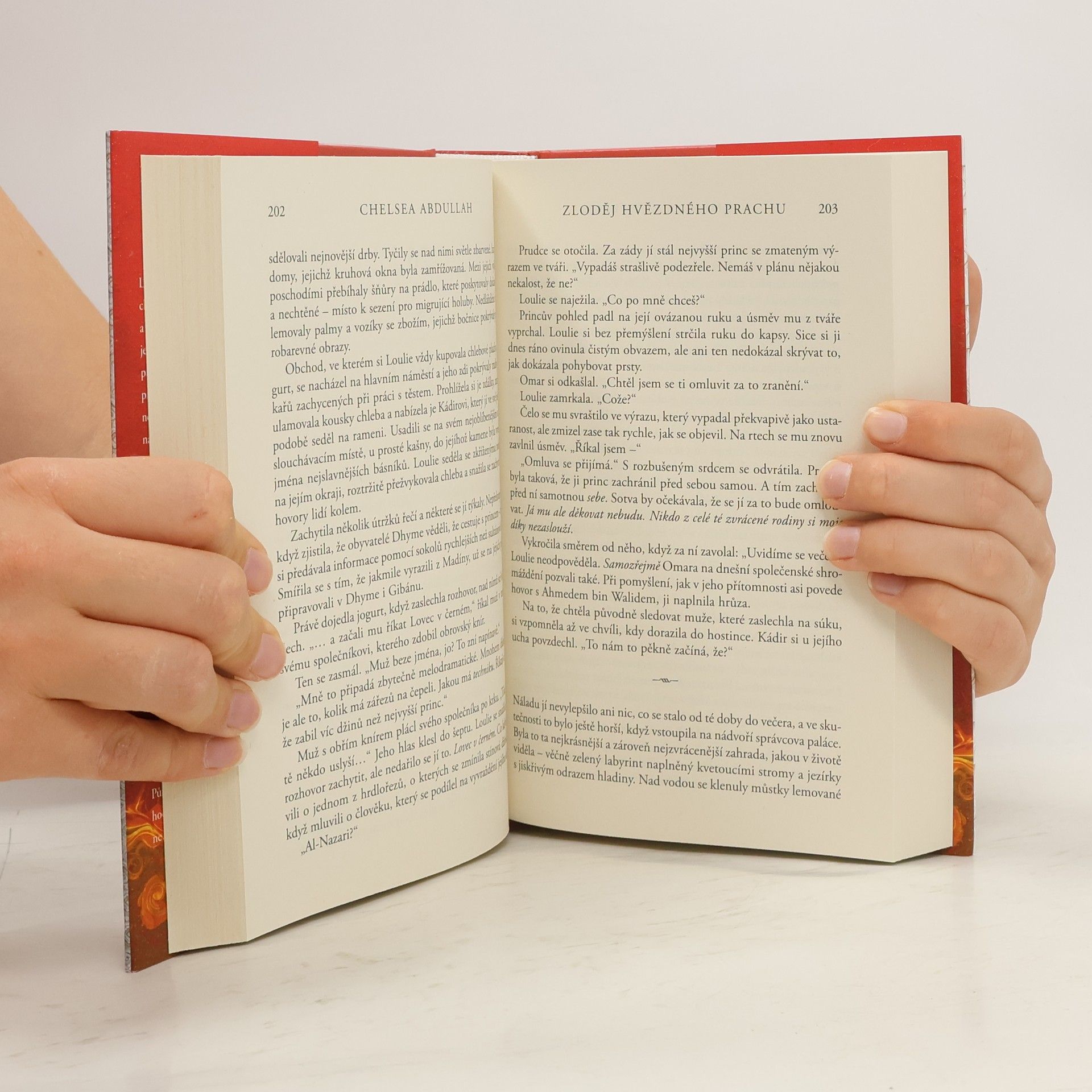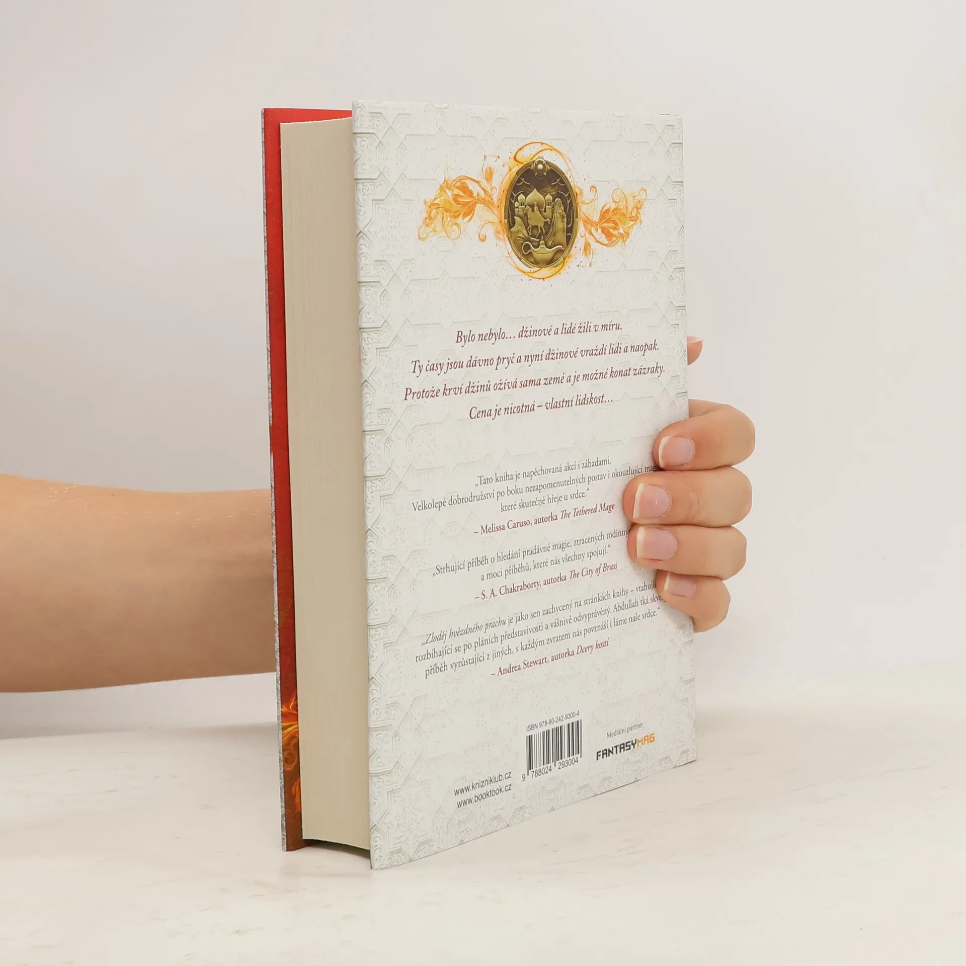 Dechberoucí vyprávění o nalezení rodiny, prastaré magii a příbězích, jež přetrvají celé věky.Loulie al-Nazari, proslulá jako Půlnoční obchodnice, si se zákony příliš hlavu nedělá. Se svým osobním strážcem, který je džin, hledají a prodávají zakázané magické předměty. Když zachrání život zbabělému princi, přitáhne k sobě pozornost jeho mocného otce – sultána – a ten ji pomocí výhrůžek pošle na výpravu za pokladem. Jde o čarovnou lampu, jejíž pomocí by ožila pustá země. Ale jen za cenu smrti všech džinů na světě. Ve světě, kde se vyprávění mění ve skutečnost a iluze v pravdu, Loulie zjistí, že nic – včetně nepřátel, magie ani její vlastní minulosti – není to, co se zdá. Nyní se bude muset rozhodnout, kým se stane.