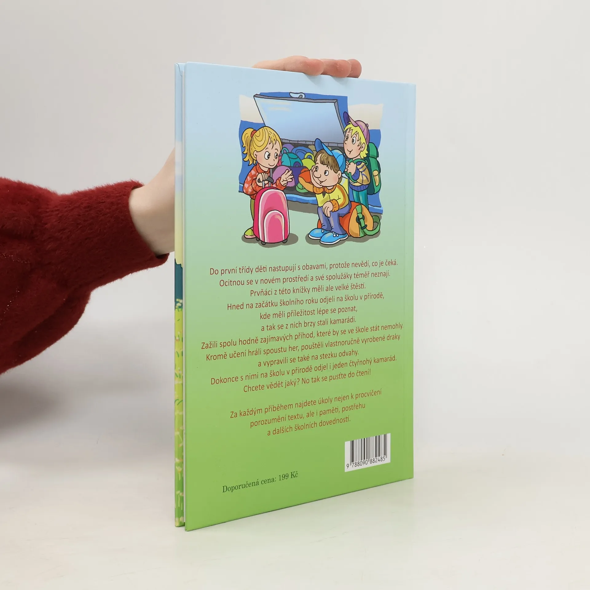 Do první třídy děti nastupují s obavami, protože nevědí, co je čeká. Ocitnou se v novém prostředí a své spolužáky téměř neznají. Prvňáci z této knížky měli ale velké štěstí. Hned na začátku školního roku odjeli na školu v přírodě, kde měli příležitost lépe se poznat, a tak se z nich brzy stali kamarádi. Zažili spolu hodně zajímavých příhod, které by se ve škole stát nemohly.Kromě učení hráli spoustu her, pouštěli vlastnoručně vyrobené draky a vypravili se také na stezku odvahy.Dokonce s nimi na školu v přírodě odjel i jeden čtyřnohý kamarád. Chcete vědět jaký? No tak se pusťte do čtení!Za každým příběhem najdete úkoly nejen k procvičení porozumění textu, ale i paměti, postřehu a dalších školních dovedností.