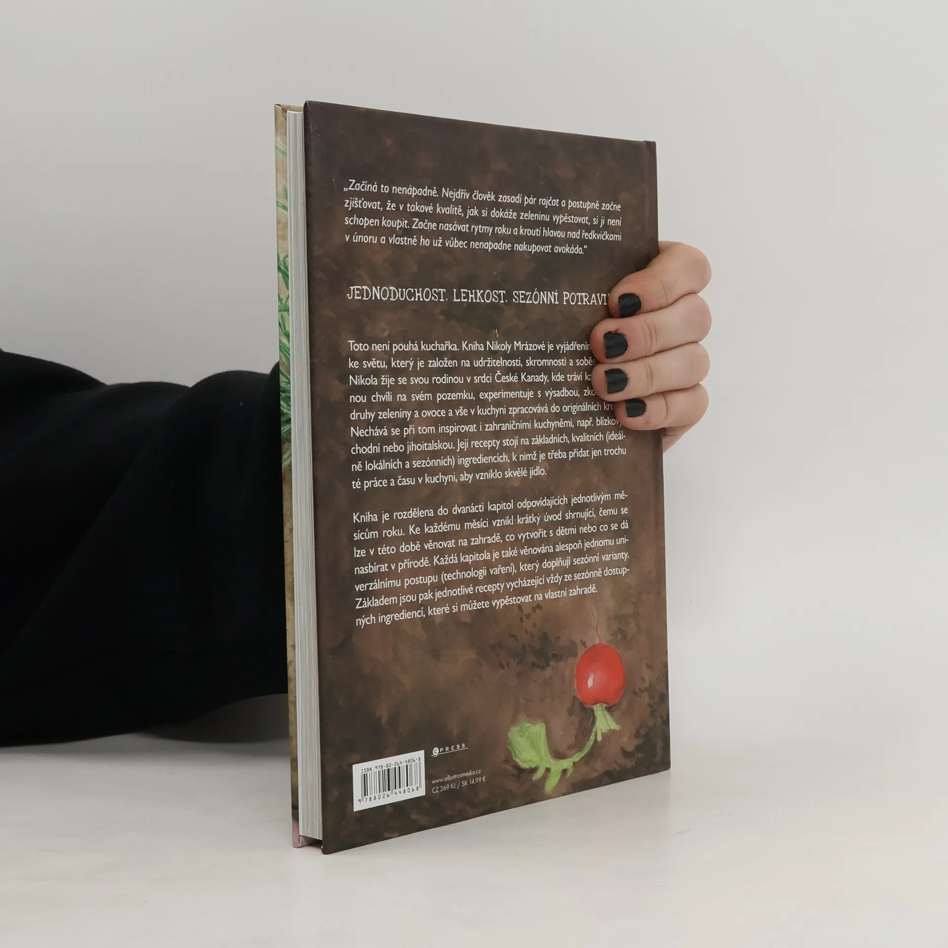 "Recepty inspirované přírodou".Pouhá kuchařka? Kdepak, tato kniha nabízí víc. Je vyjádřením přístupu ke světu, který je založen na skromnosti a soběstačnosti. Nikola Mrázová žije v srdci České Kanady, kde experimentuje se zahradničením, zkouší nové druhy zeleniny a ovoce a vše pak v kuchyni zpracovává do originálních kreací. Její recepty stojí na základních, kvalitních (ideálně lokálních a sezónních) ingrediencích, k nimž je třeba přidat jen trochu té práce a času v kuchyni, aby vzniklo skvělé a zdravé jídlo.