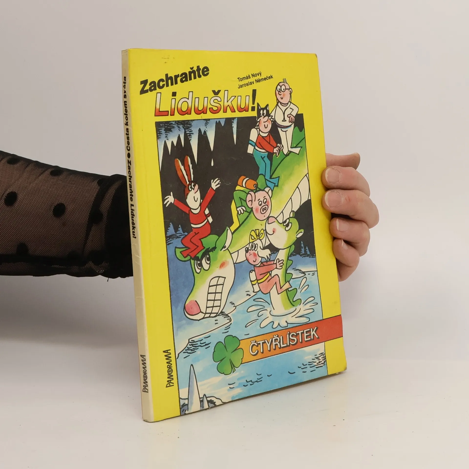 Dva samostatné příběhy Čtyřlístku. Příběh Zachraňte Lidušku tištěn zvratmo se samostatnou obálkou. Cesta kolem světa (73 stran) - Stanislav Hojka, Jaroslav Němeček. Zachraňte Lidušku (87 stran) - Tomáš Nový, Jaroslav Němeček.
