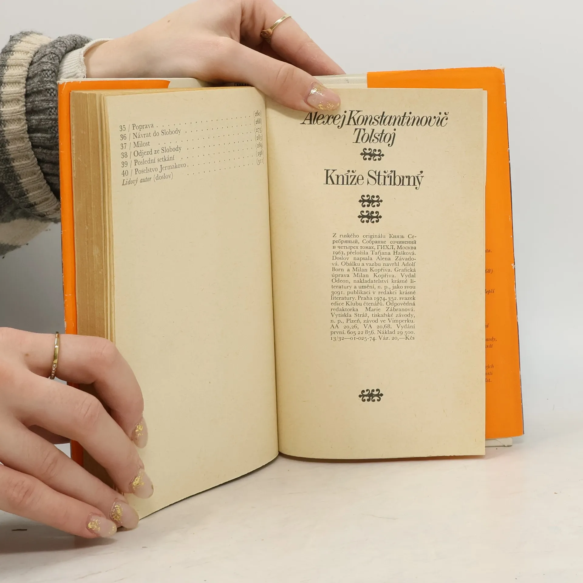 Historický román, oživující a dramatizující epochu panování ruského cara Ivana IV. Hrozného, panovníka širokého státnického rozhledu, povahově však nevyrovnaného, podezřívavého a neobyčejně krutého. Autor-jemuž se podařilo vytvořit působivé panoráma doby v druhé polovině 16. století-staví proti carově zvůli vybájenou postavu knížete Stříbrného, který se spolu s bojarem Morozovem vzepře hrůzovládě a neváhá obětovat i svůj život.