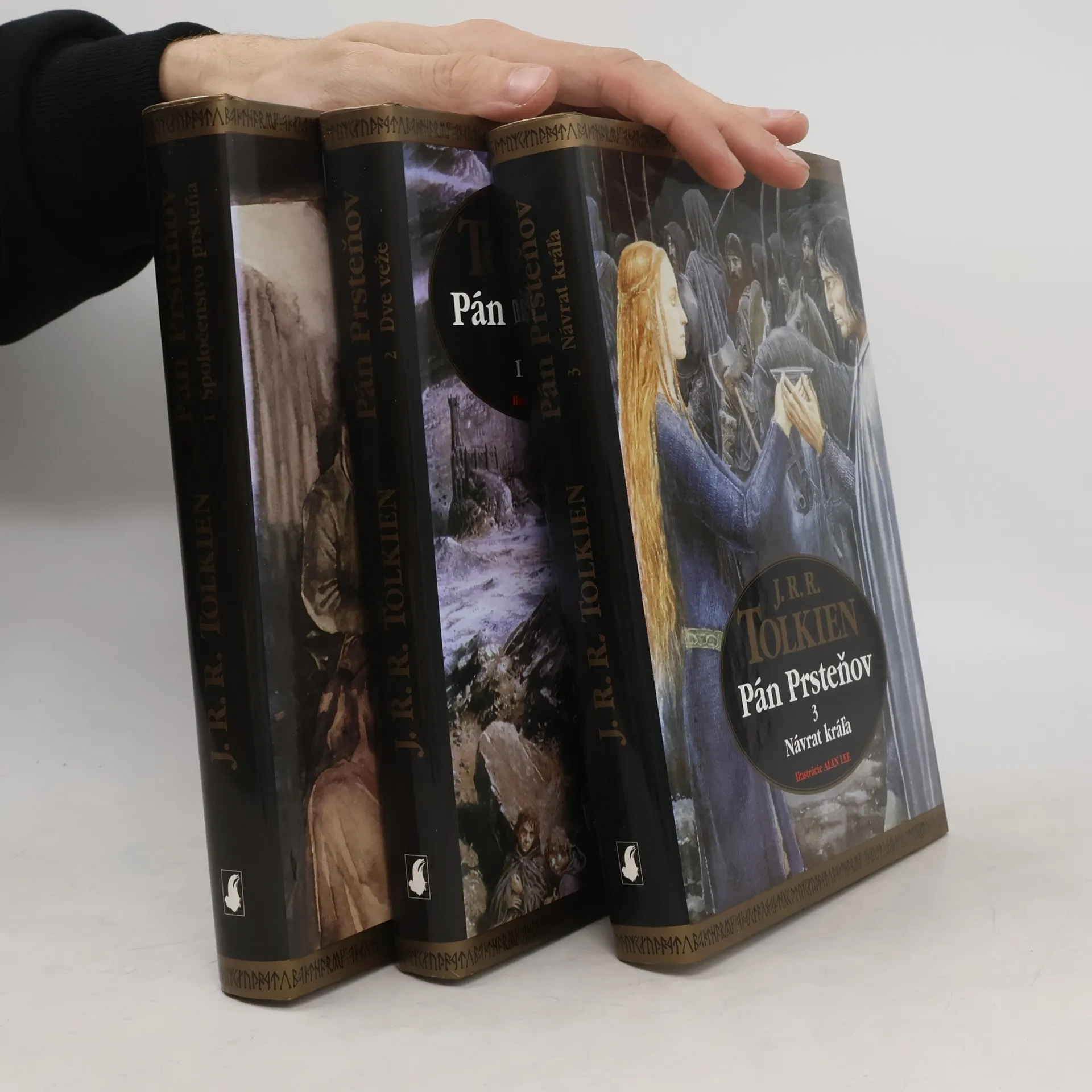 John Ronald Reuel Tolkien, svetoznámy anglický spisovateľ, profesor angličtiny v Oxforde, jeden z najlepších filológov svojich čias a autor mnohých vedeckých prác sa preslávil najmä ako tvorca nezvyčajnej fiktívnej krajiny, ktorá už niekoľko rokov uchvacuje čitateľov na celom svete. Pán prsteňov vychádza v jedinečnom kompletnom ilustrovanom vydaní. Trilógia je fantastickou históriou vojny o Prsteň, rozprávaním o boji slobodných národov Stredozeme proti Tieňu a o putovaní hobita Froda, ktorý sa vybral zachrániť svet pred silami zla.