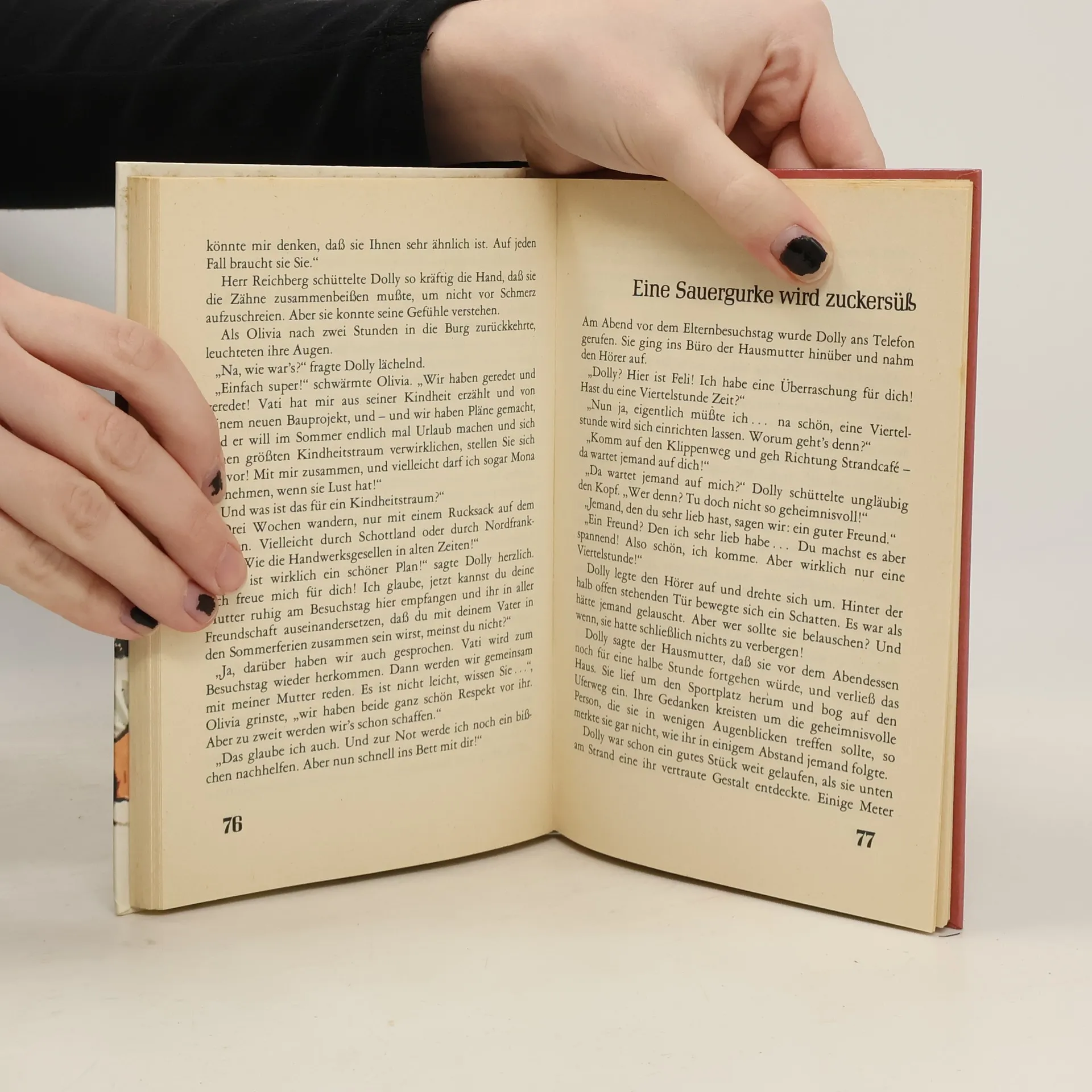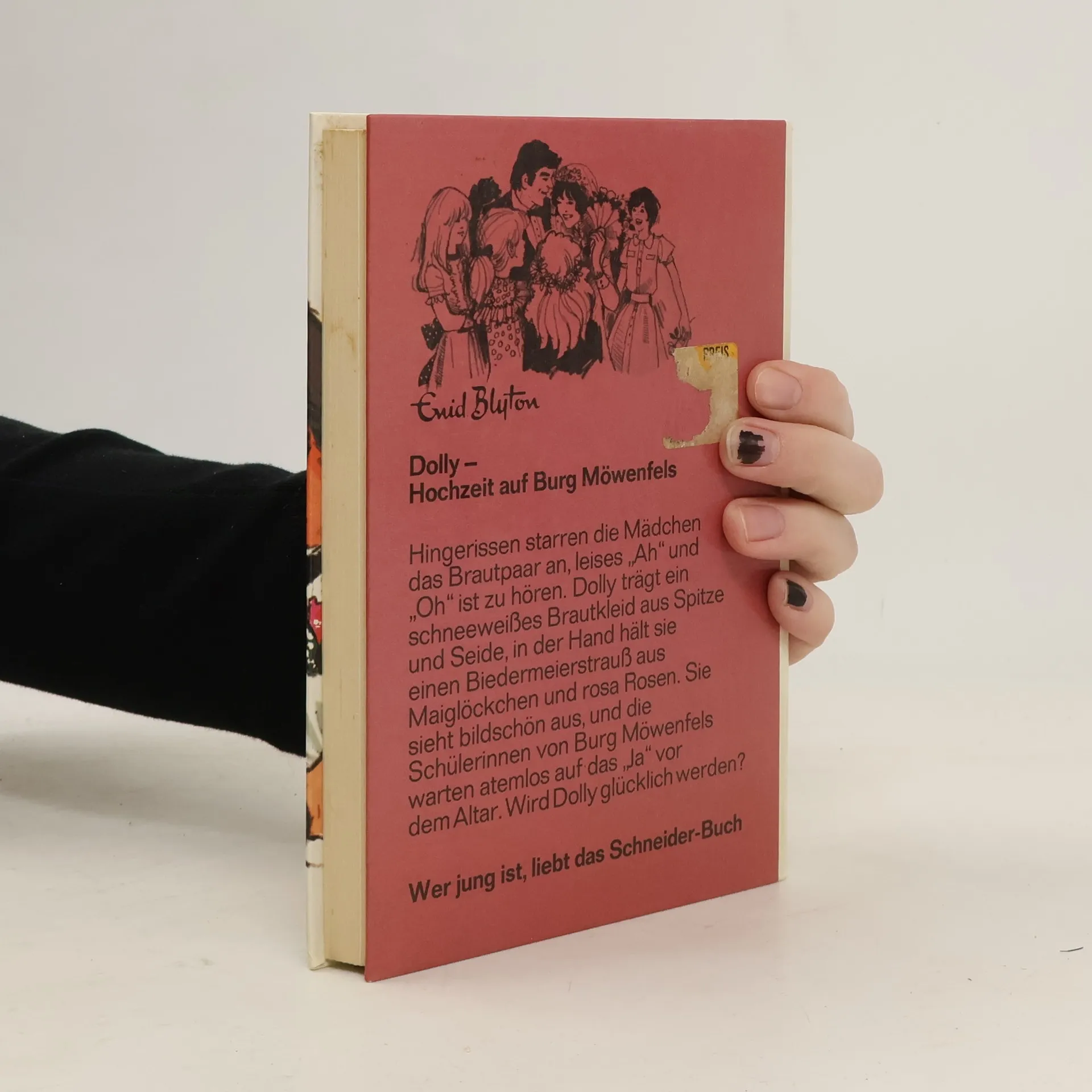 Hingerissen starren die Mädchen das Brautpaar an, leises 'Ah' und 'Oh' ist zu hören. Dolly trägt ein schneeweißes Brautkleid aus Spitze und Seide, in der Hand hält sie einen Strauß aus Maiglöckchen und rosa Rosen. Sie sieht bildschön aus und die Schülerinnen von Burg Möwenfels warten atemlos auf das 'Ja' vor dem Altar. Wird Dolly glücklich werden?